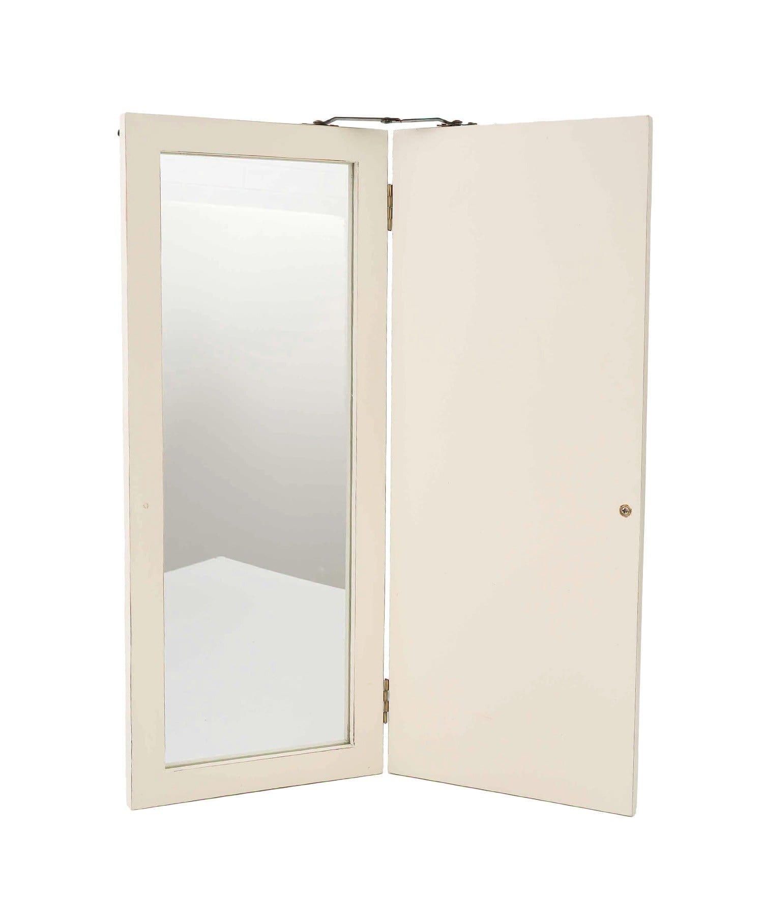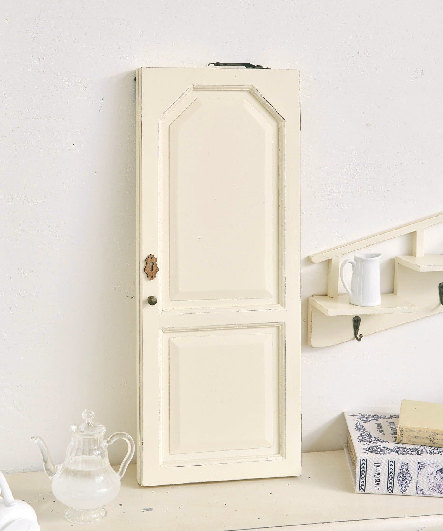 ●ドアをモチーフにした、アンティークなホワイトカラーの壁掛けミラー。