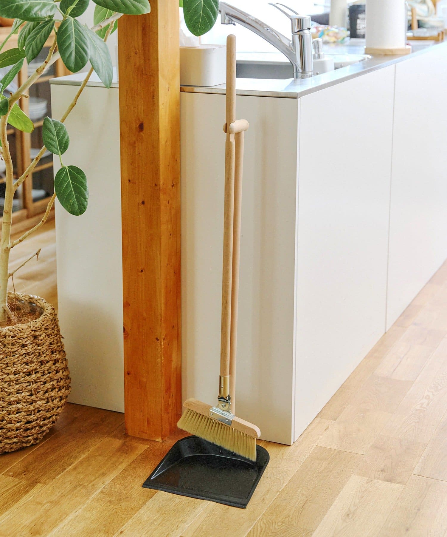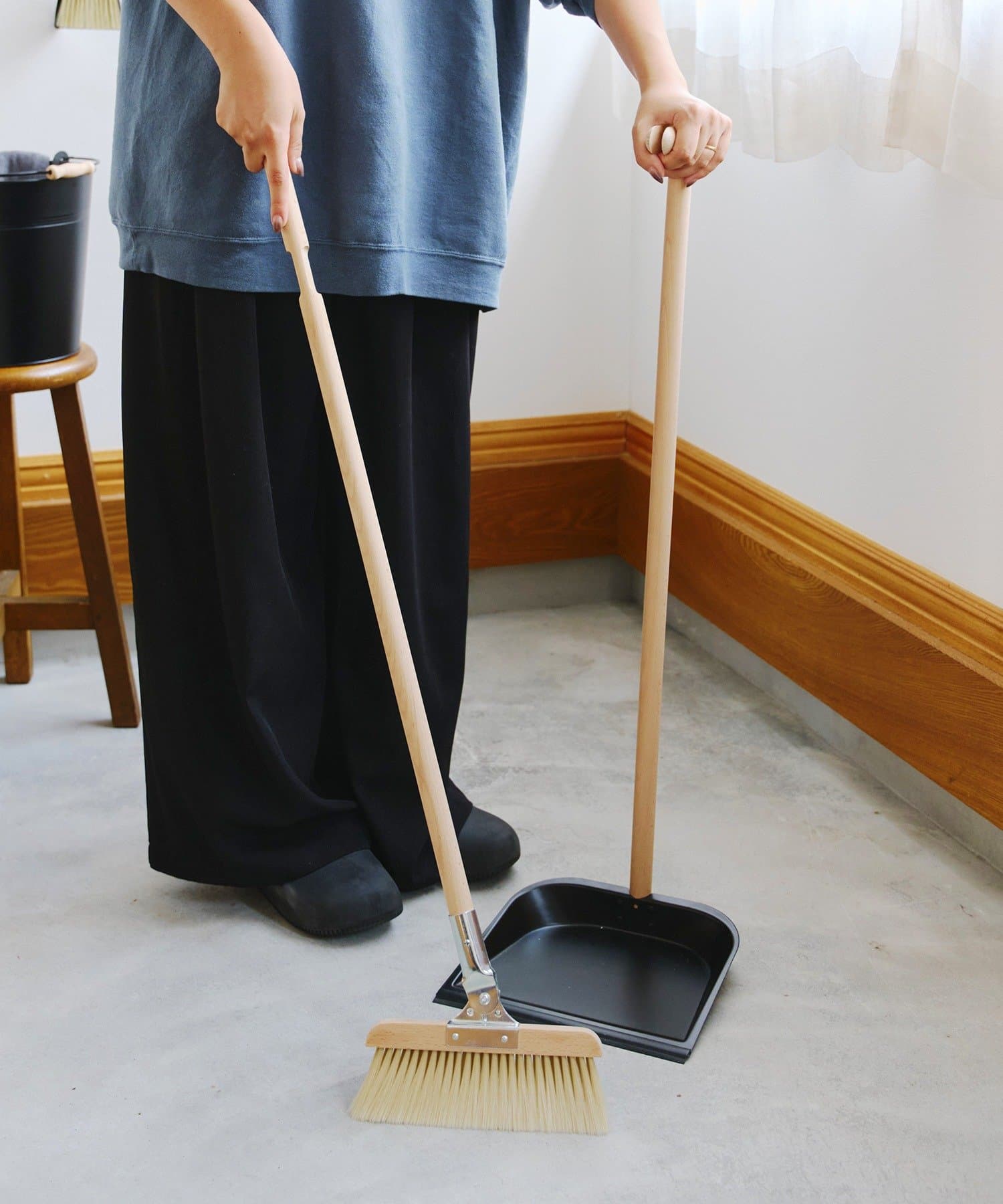 ●木製の柄と柔らかい毛先のほうきが特徴の、スタンドブルームセット。