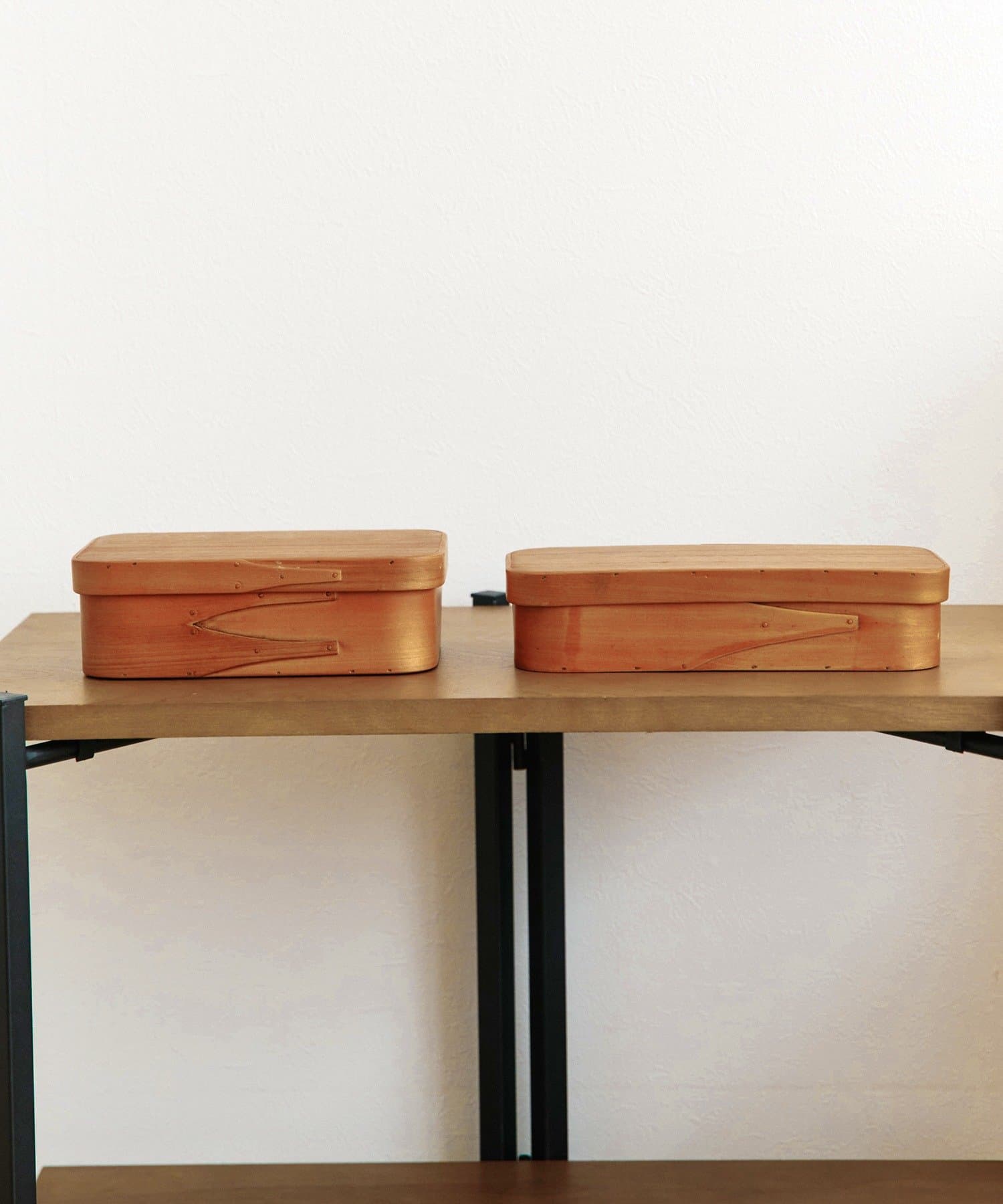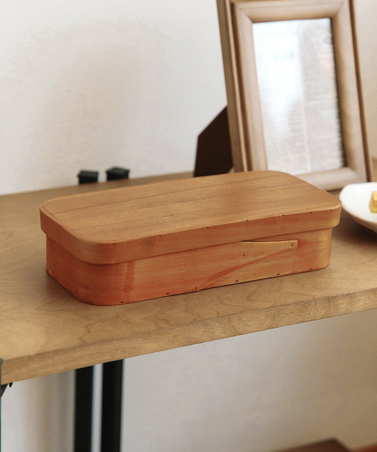 ●木を曲げて作っている、温かみとハンドメイド感のある収納ボックス。