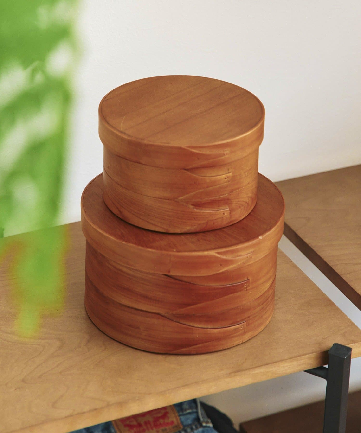 ●木を曲げて作っている、温かみとハンドメイド感のある収納ボックス。