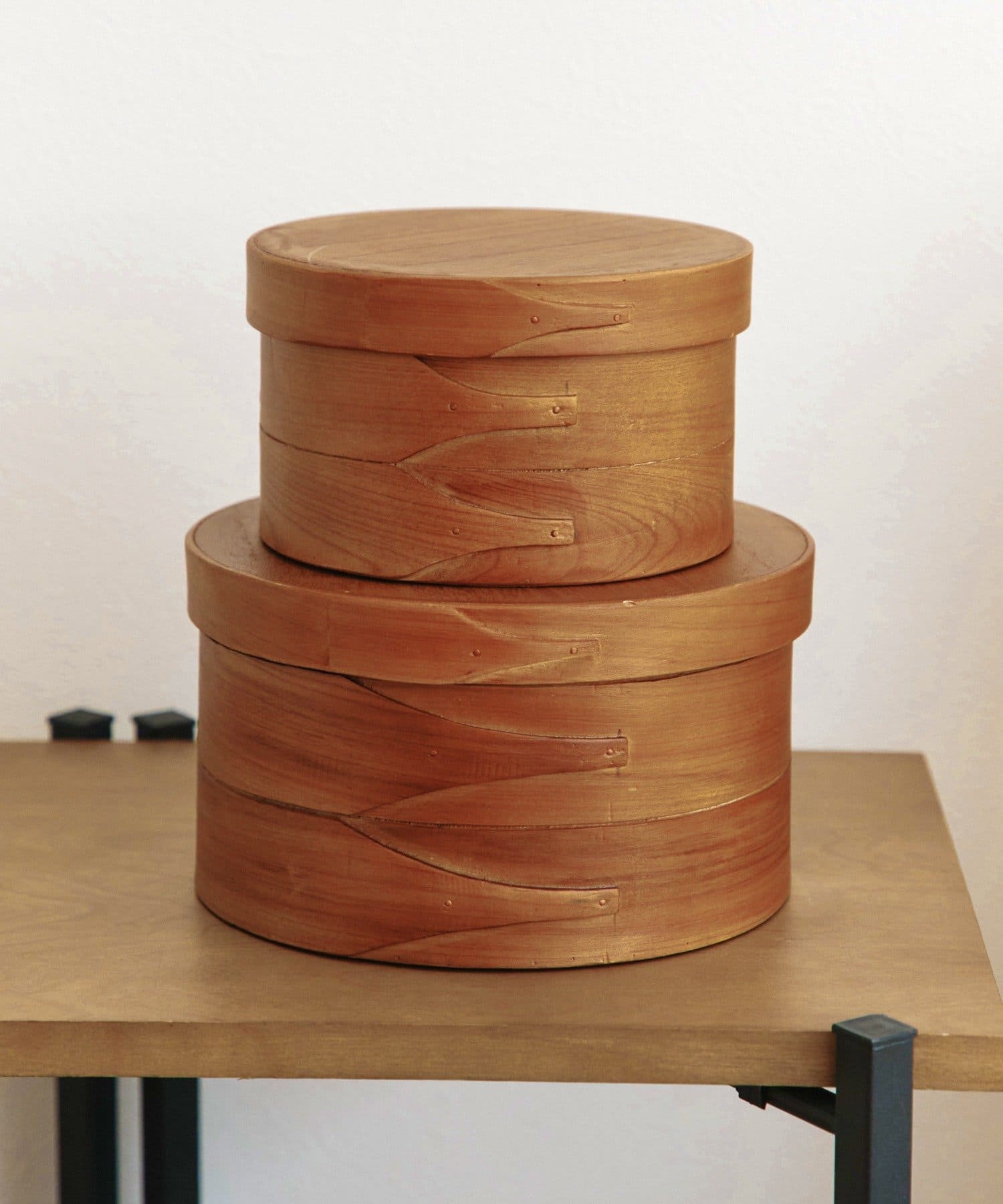 ●木を曲げて作っている、温かみとハンドメイド感のある収納ボックス。