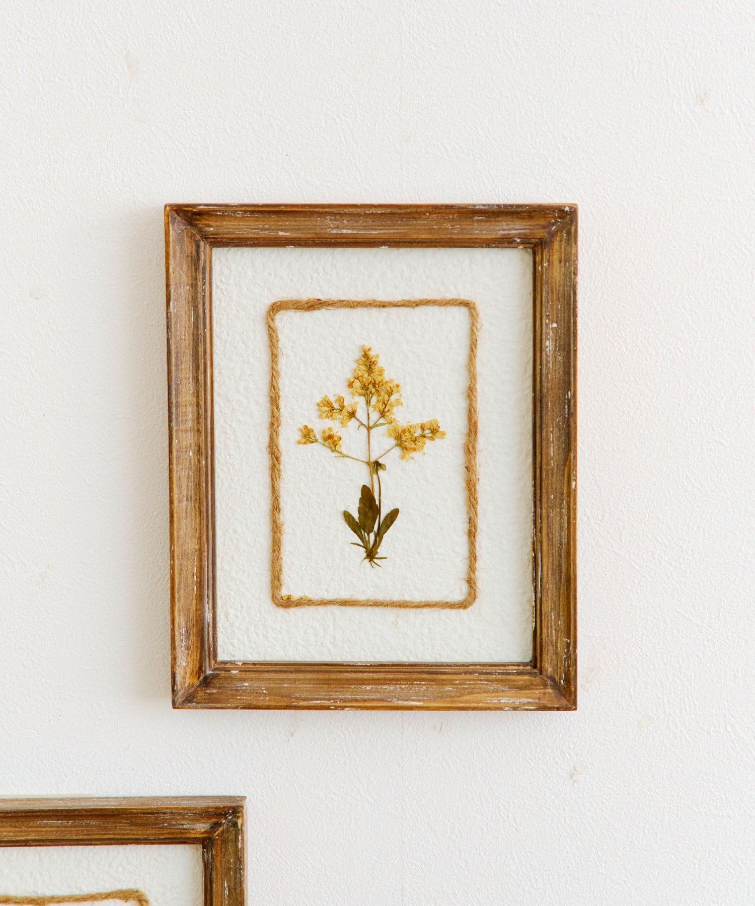 ●繊細な押し花を閉じ込めた、ナチュラルな木製フレームのアートパネル。