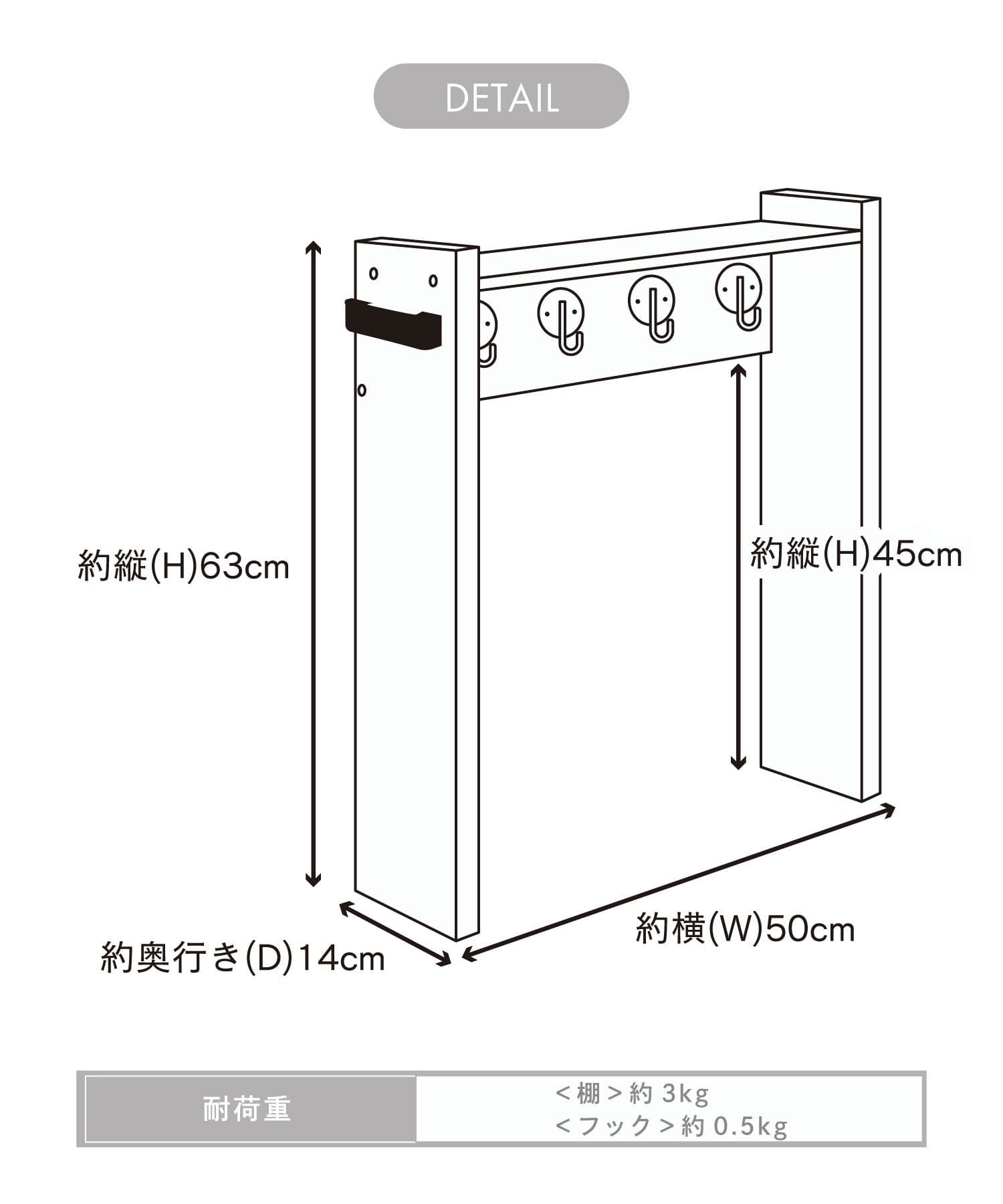 サイズ - 0 約縦63×横50×奥行き14cm 耐荷重:<棚>約3kg