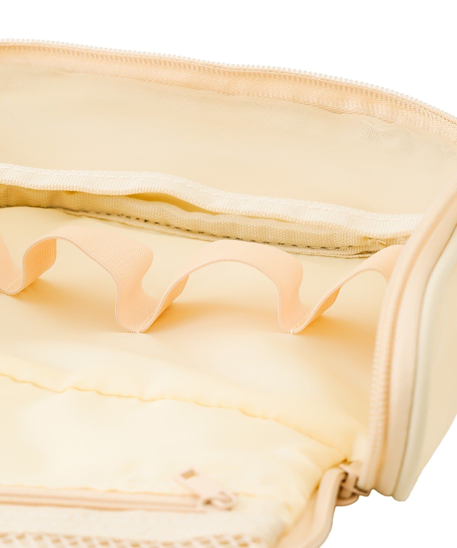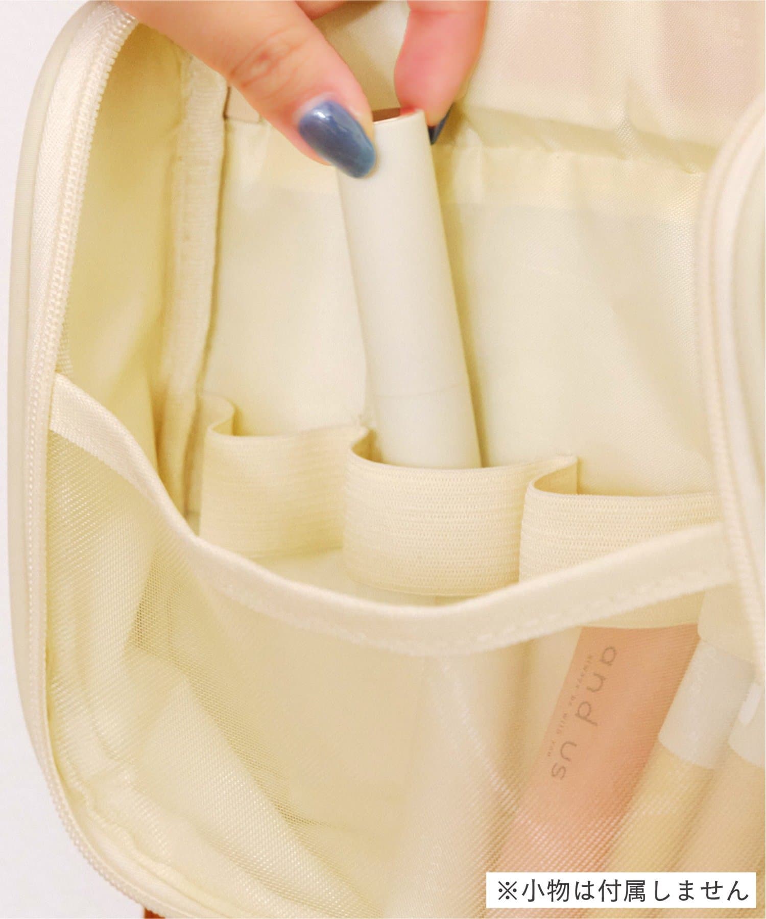 ●内側のポケットにはゴムバンドがありボトルやコスメ類の収納にぴったり。
