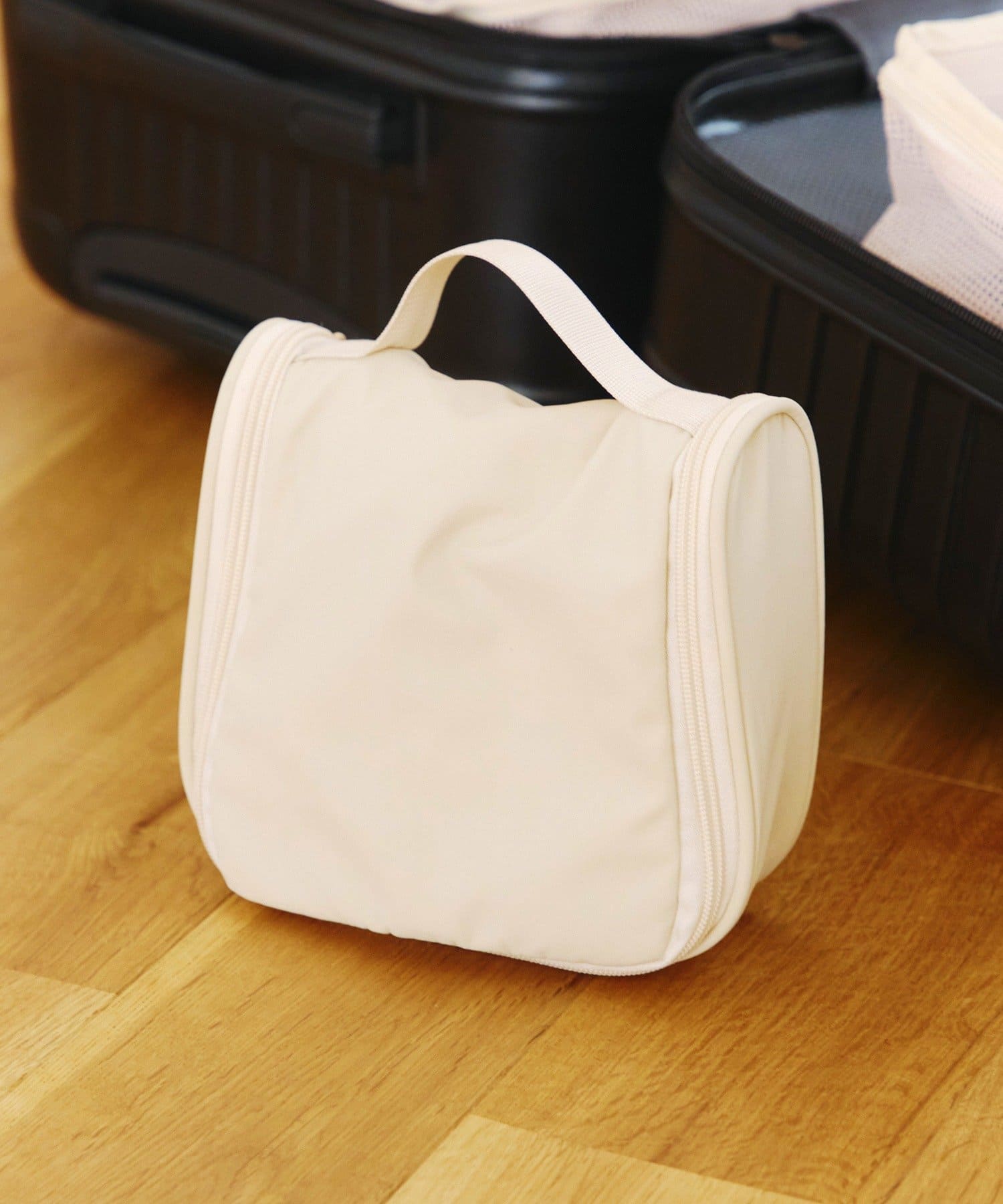 ●洗面台まわりを省スペースに使えるアメニティポーチ。