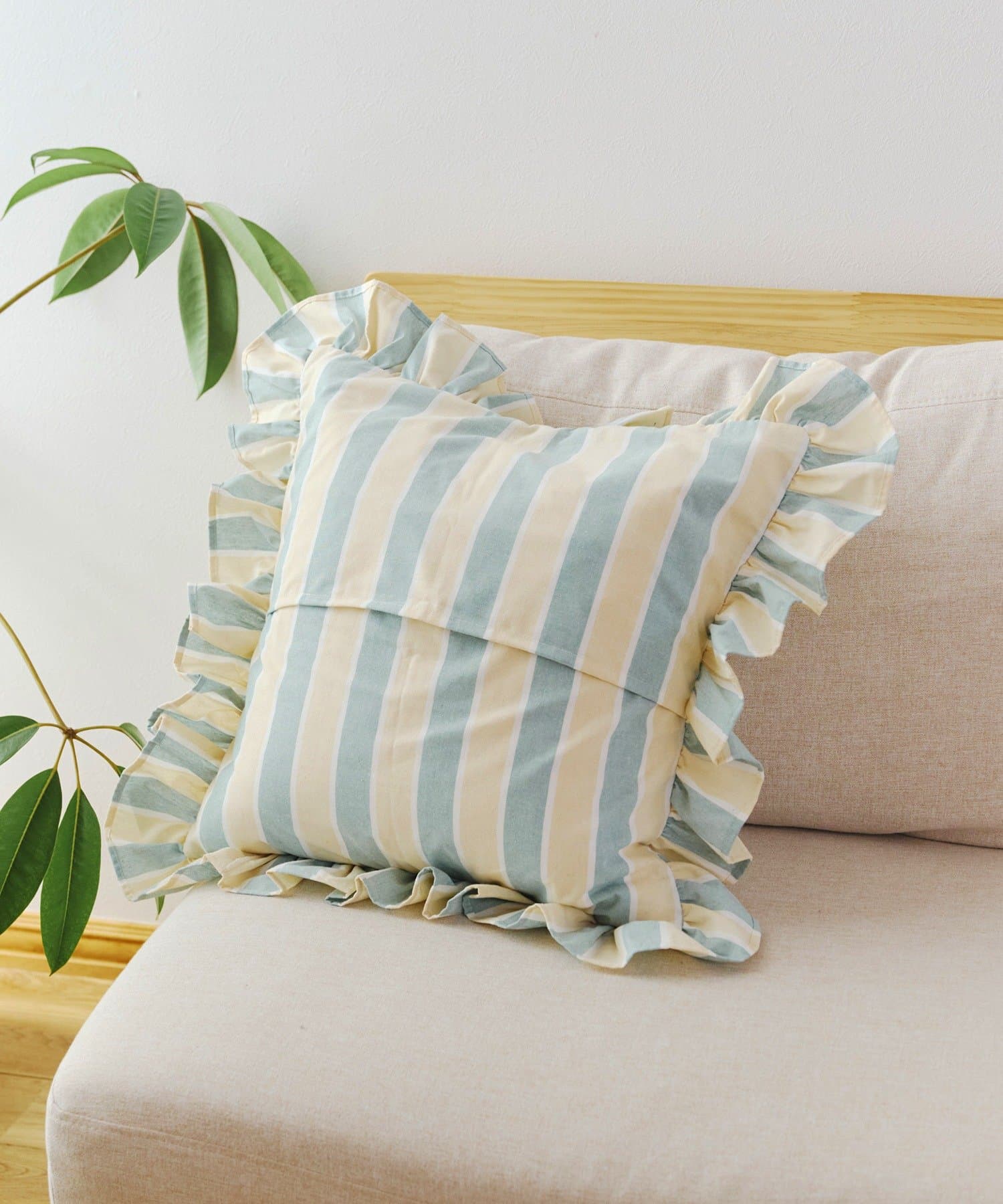 ●ナチュラルで爽やかなストライプ柄のクッションカバー。