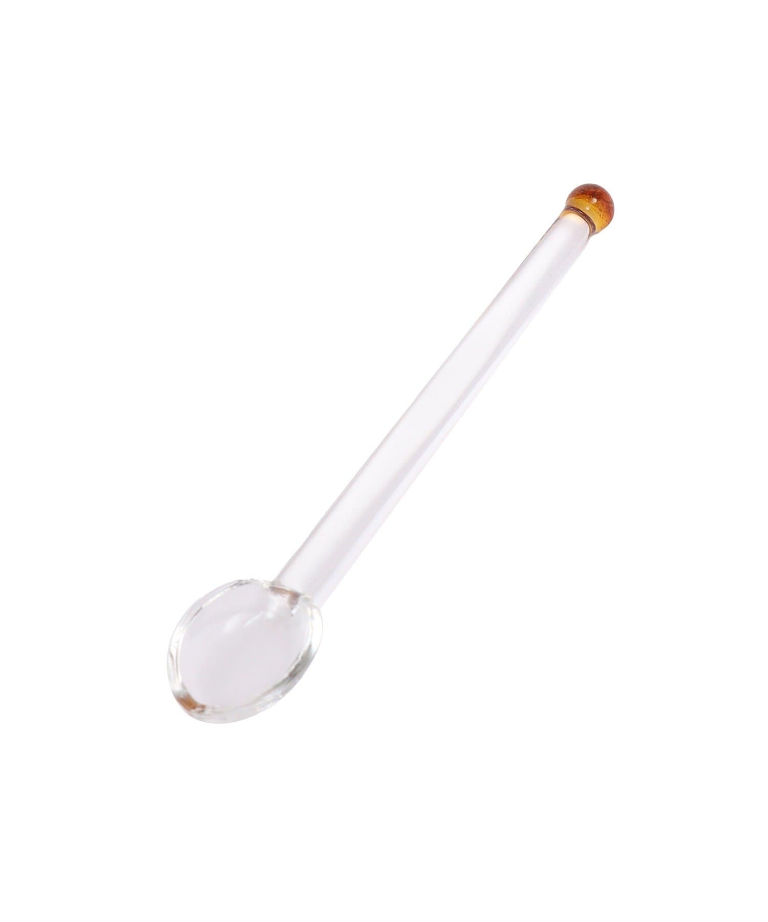 ●ころんとした先端に琥珀色のアクセントが可愛い、ガラスのミニスプーン。