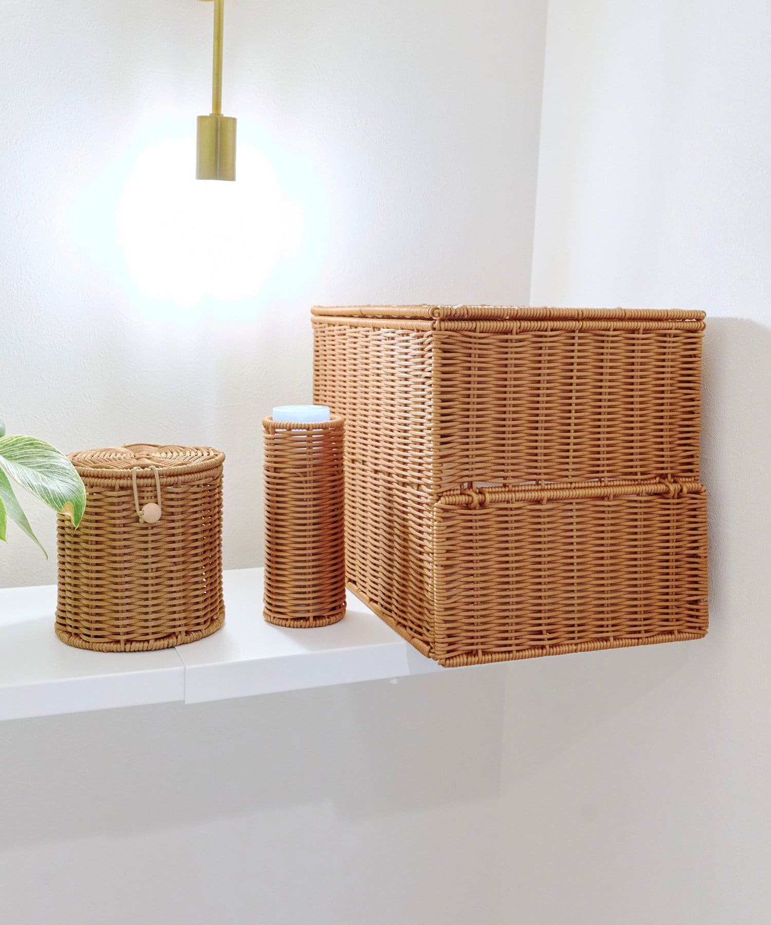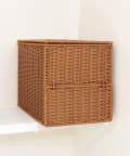 ●上と横、2カ所から取り出せるので、棚上の収納にもオススメです。
