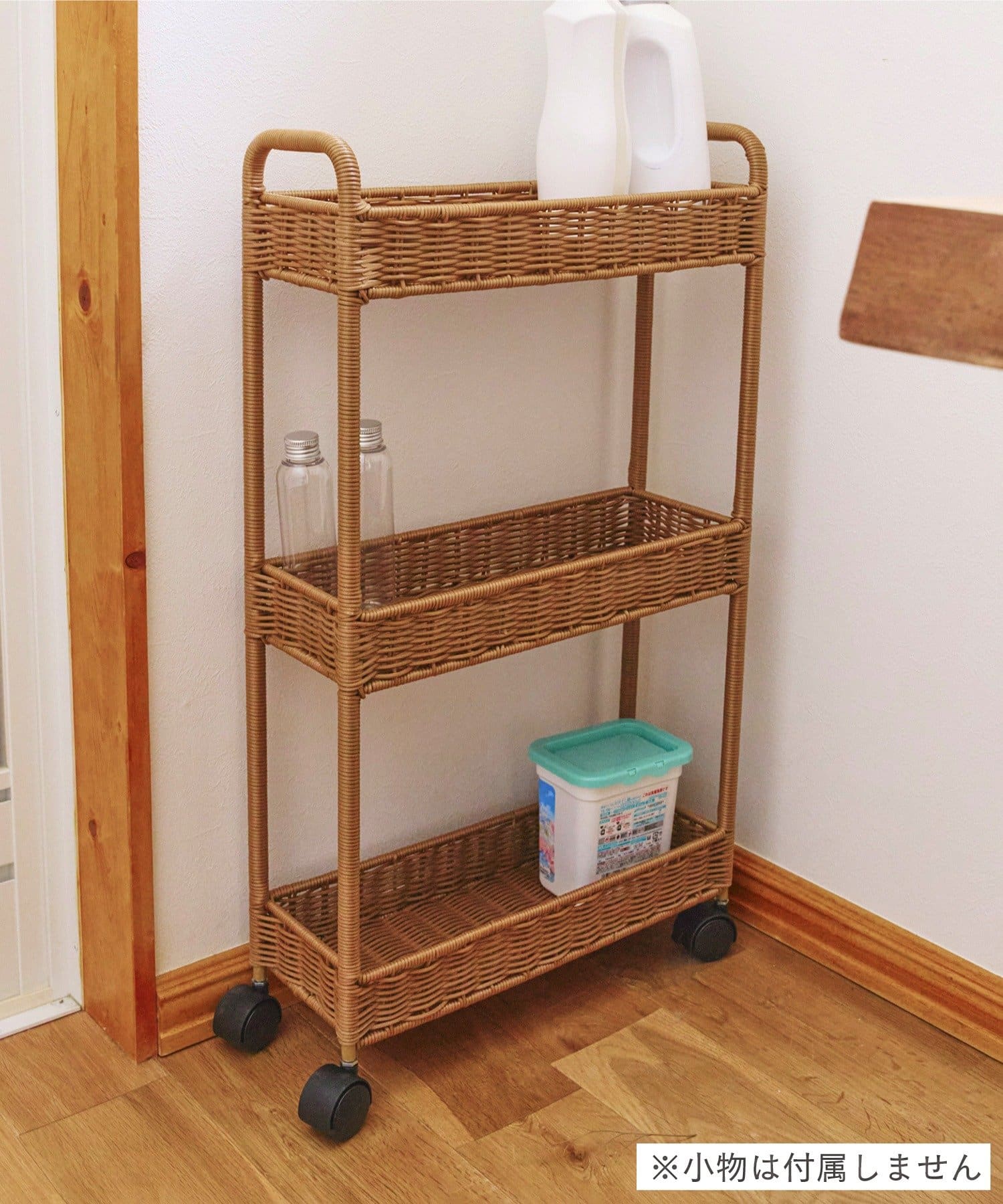 PEラタンキャスター付きスリムワゴン3段/暮らしにラタンを