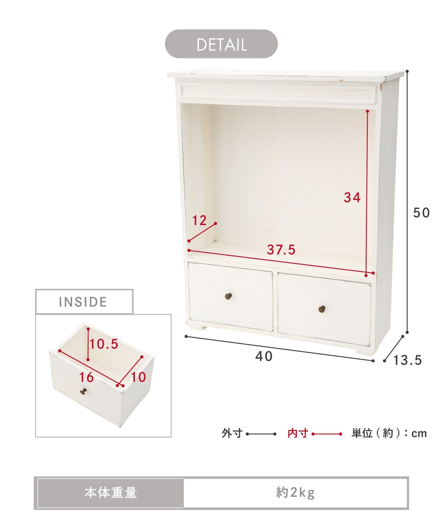 内寸:<収納>約高さ34×幅37.5×奥行き12cm