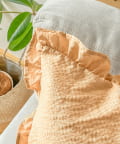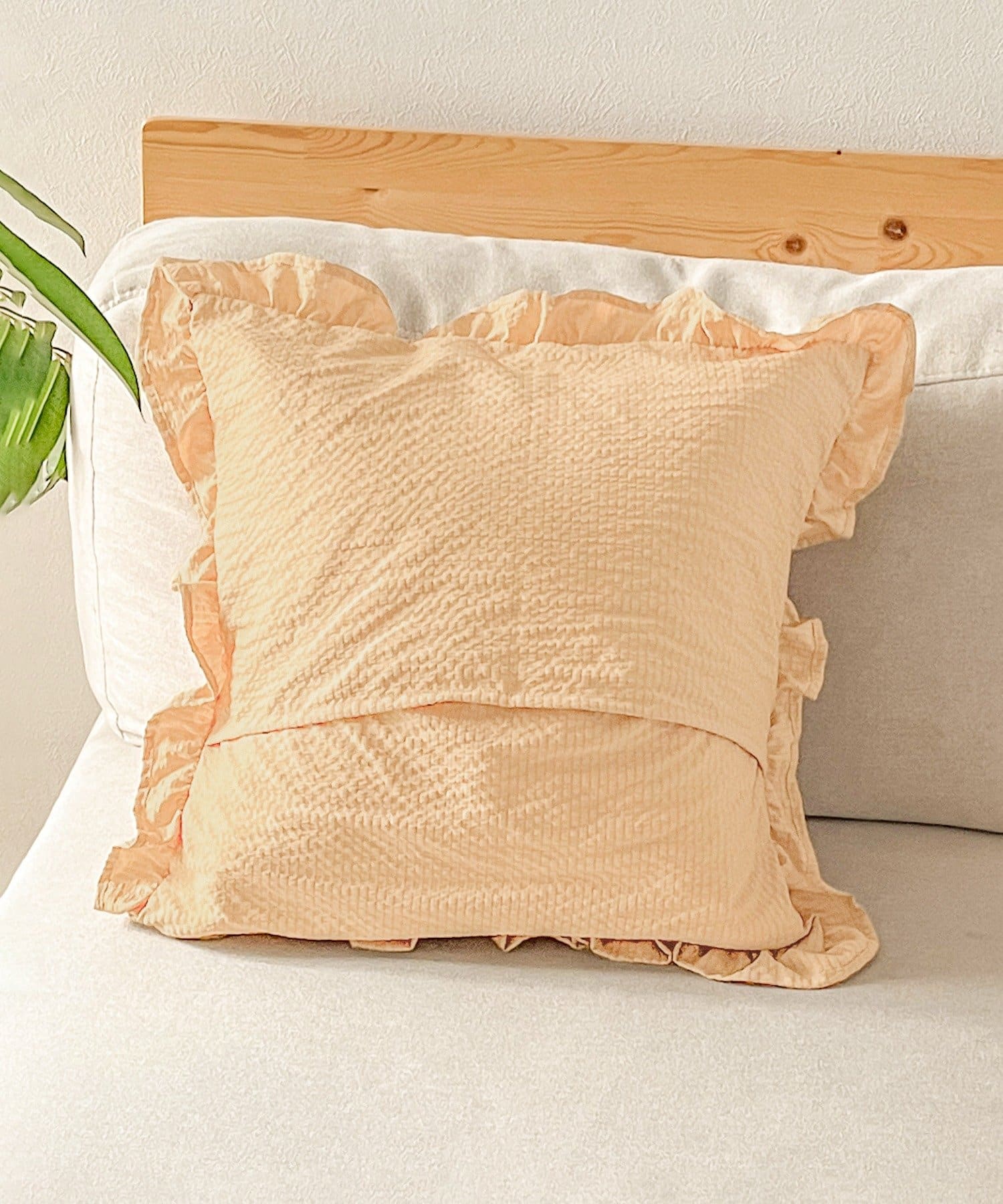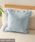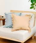 ●くしゅっと感とさりげないストライプとフリルがクッションカバー。