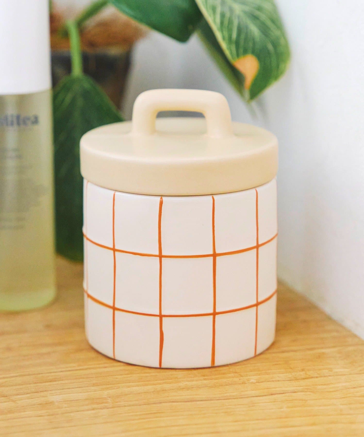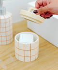 ●優しいチェック柄が可愛い、陶器製のコットンケース。