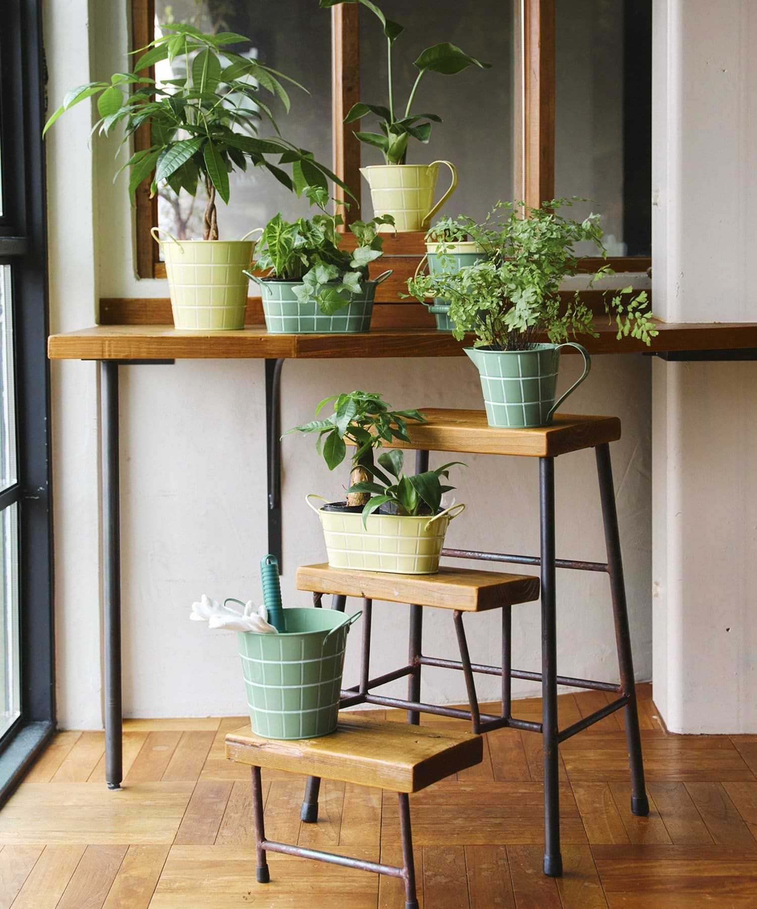 ●タイルを並べたようなデザインが可愛い、ブリキ製のオーバルバスケット。