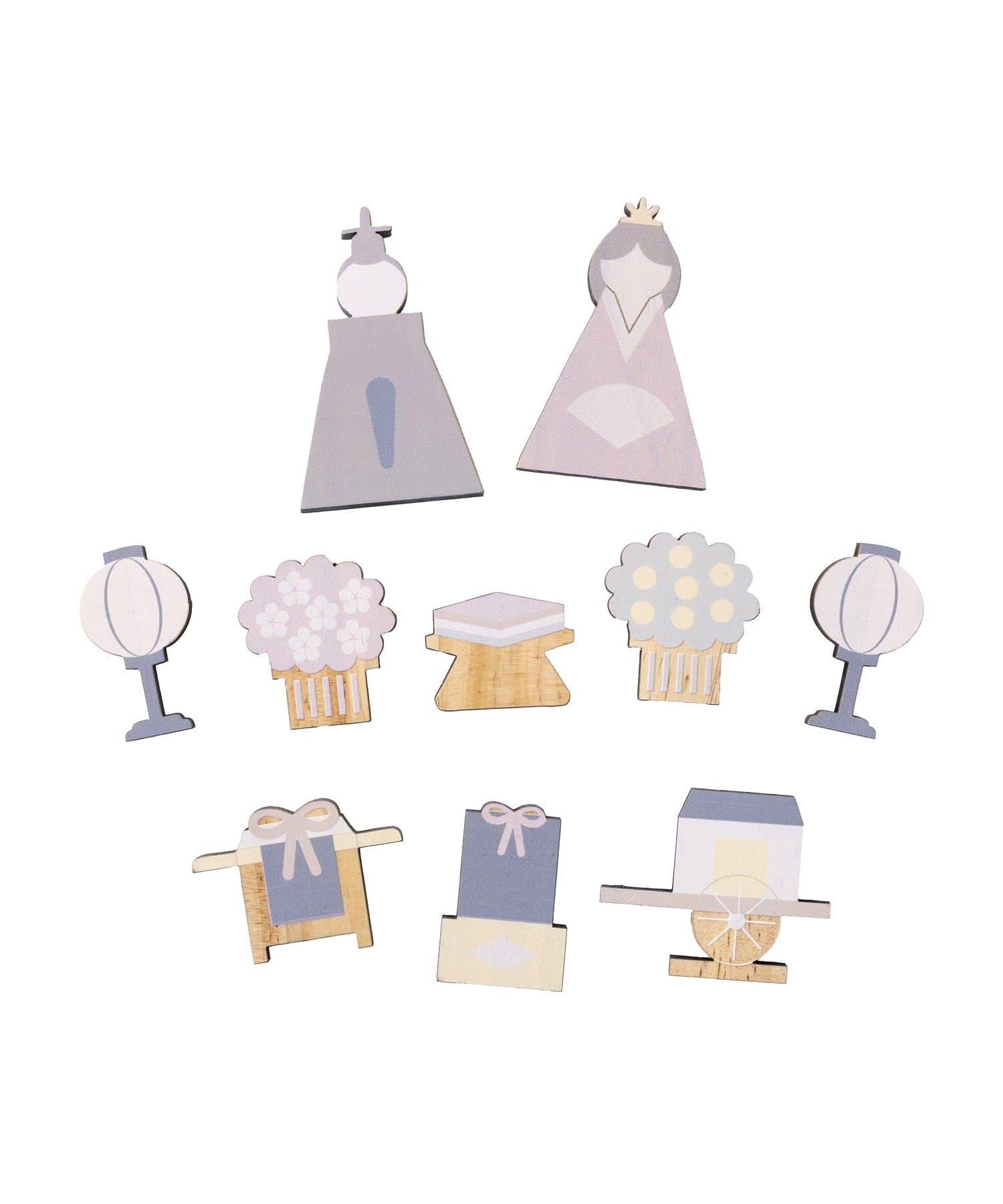 ●優しいカラーが可愛い、あたたかみある木製雛人形オブジェセット。