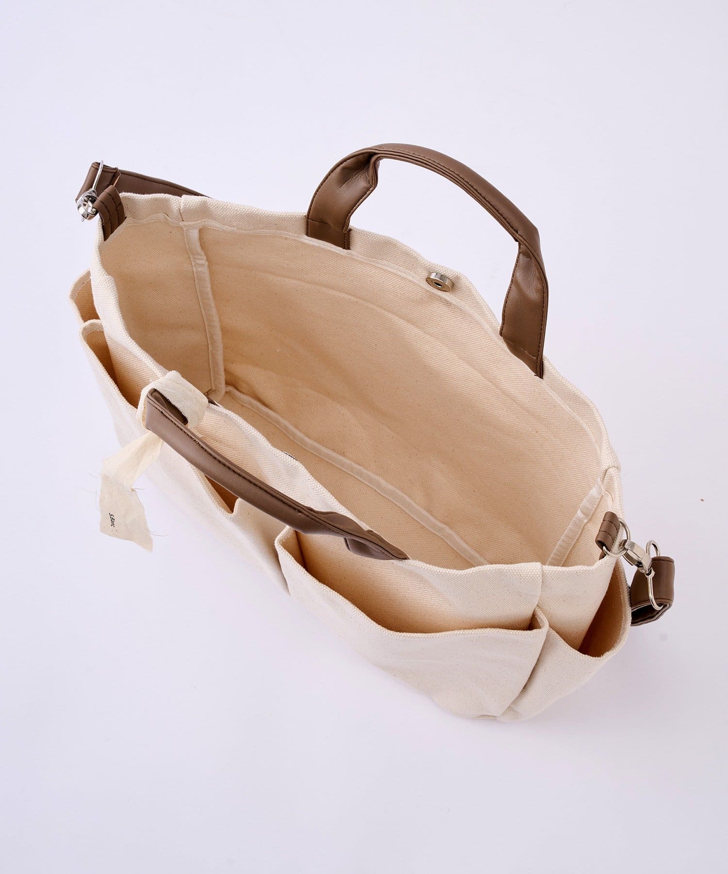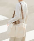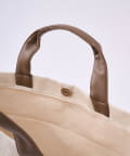 ●強度のある22ozのキャンバス生地×ブラウンのフェイクレザーの組み合わせがナチュラルでオシャレな2WAYバッグ。