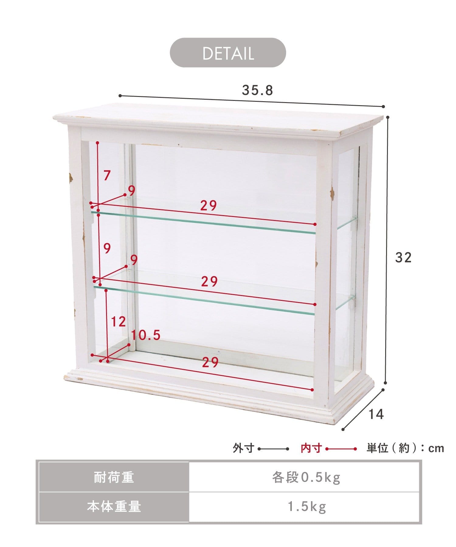 ●ガラス板は取り外せるので、飾るものの高さに合わせて調整できます。