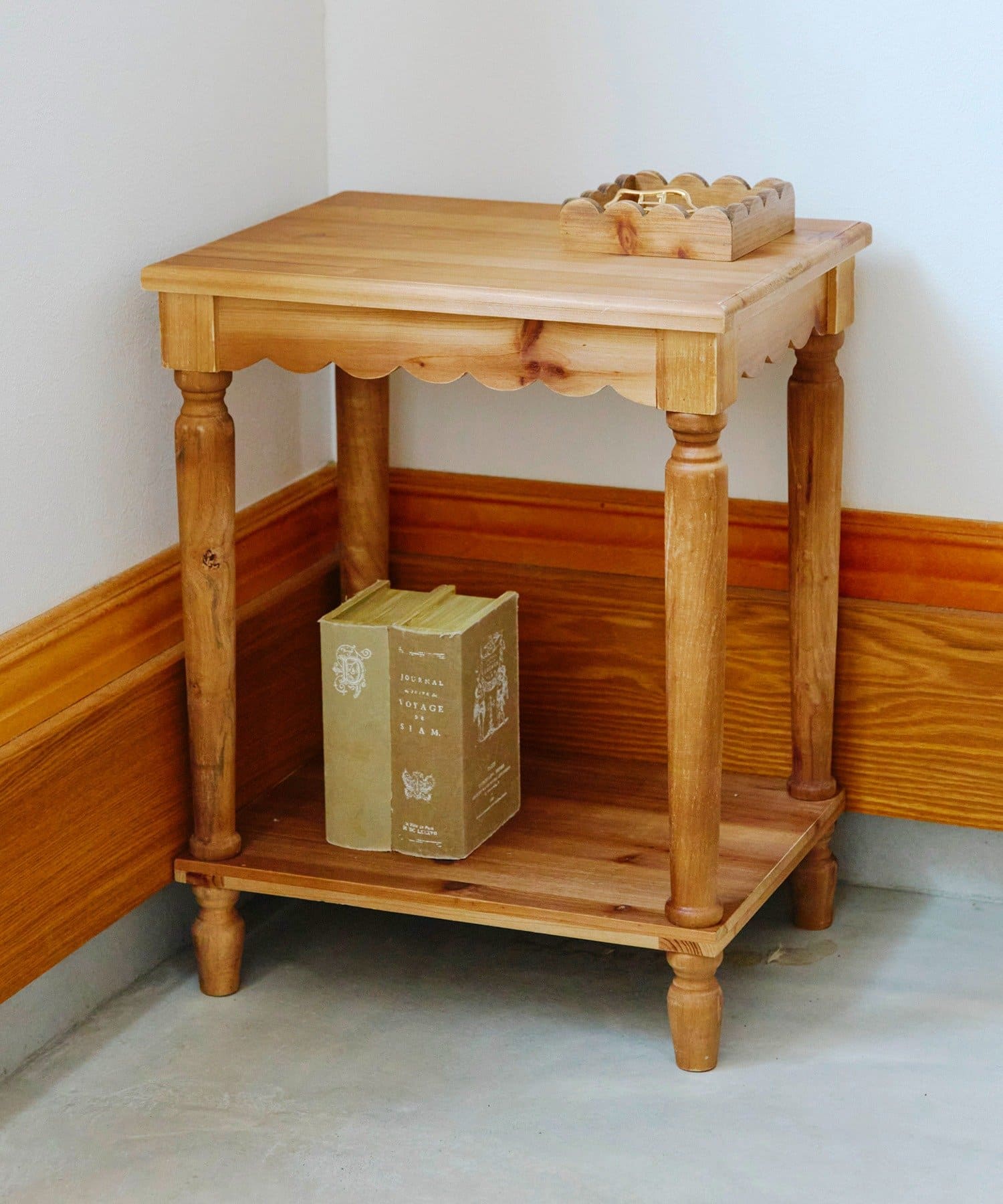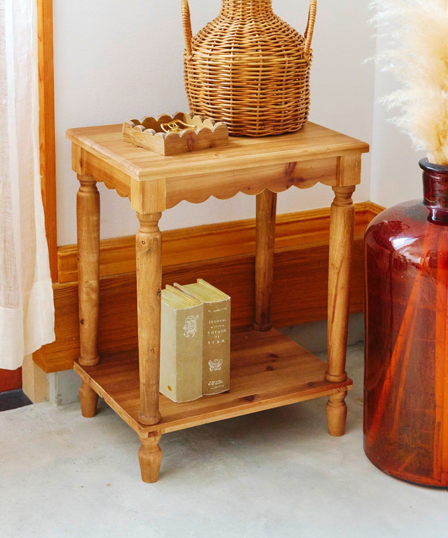 ●スカラップの波型縁取りが可愛い木製サイドテーブル。