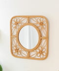 ●ラタンで編まれたフラワーモチーフが可愛いスクエアミラー。
