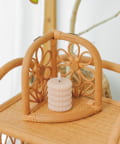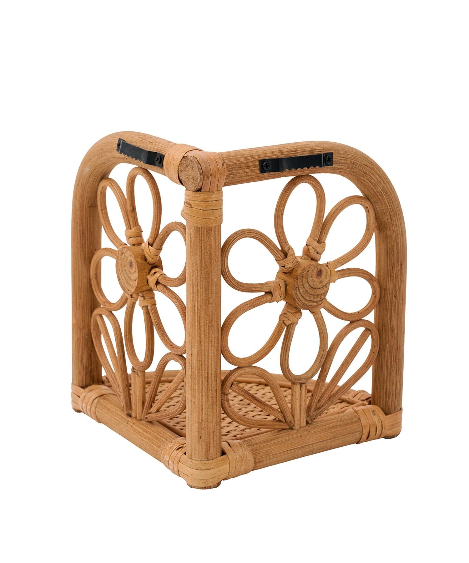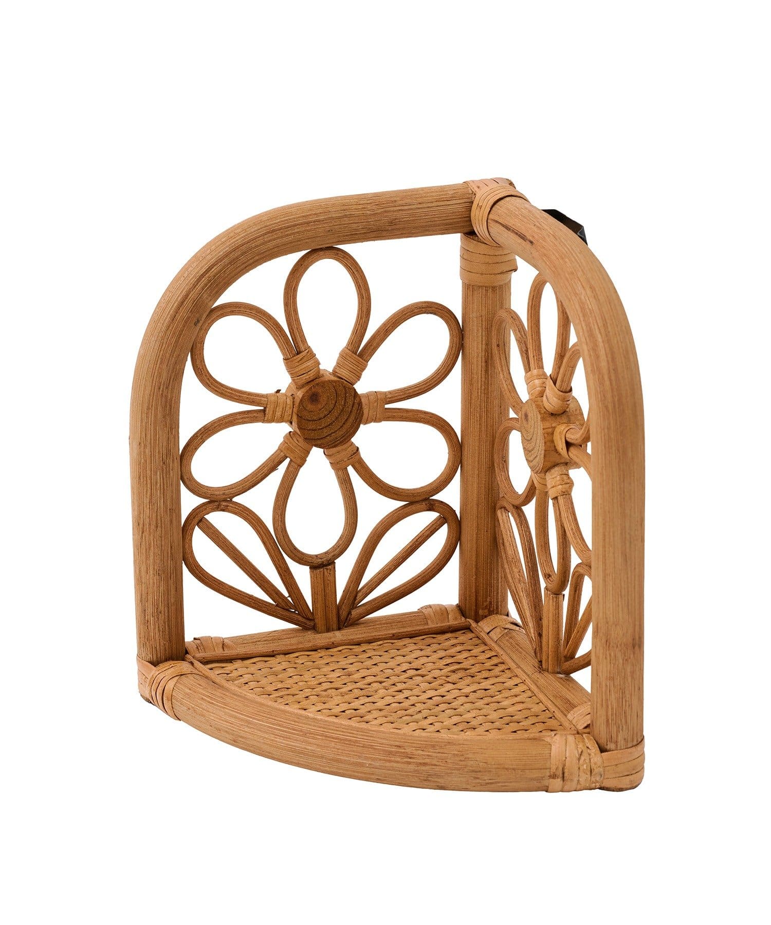 ●フラワーデザインが目を引く、ラタン素材のコーナーラック。