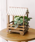 ●観葉植物や多肉を乗せるだけで可愛くナチュラルに飾れるレトロな木製カート型のガーデンラック。
