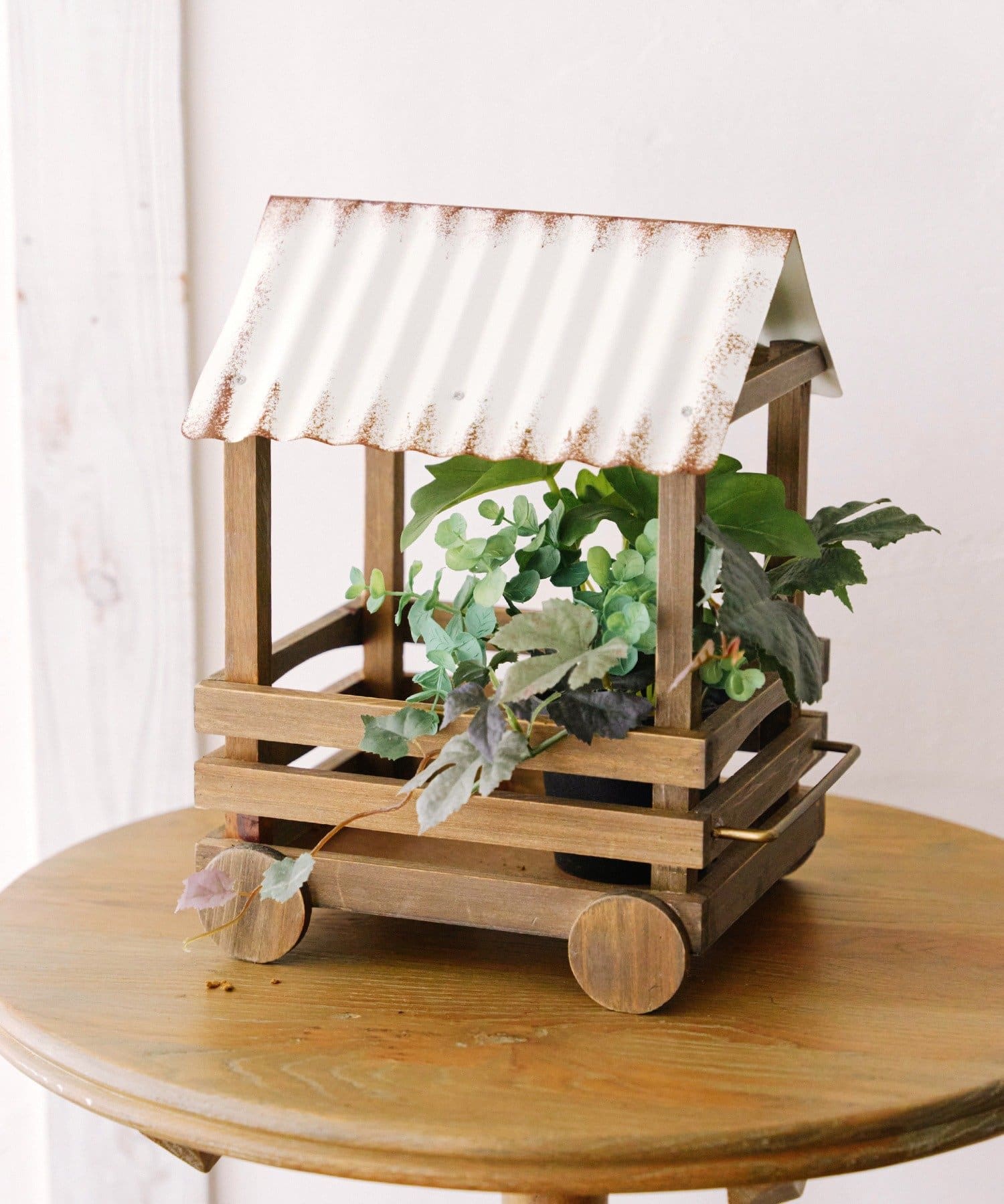 ●錆びた風合いの屋根と取っ手付きのデザインがシャビーシックで、置くだけでお部屋や玄関にほっこりした物語感をプラス。