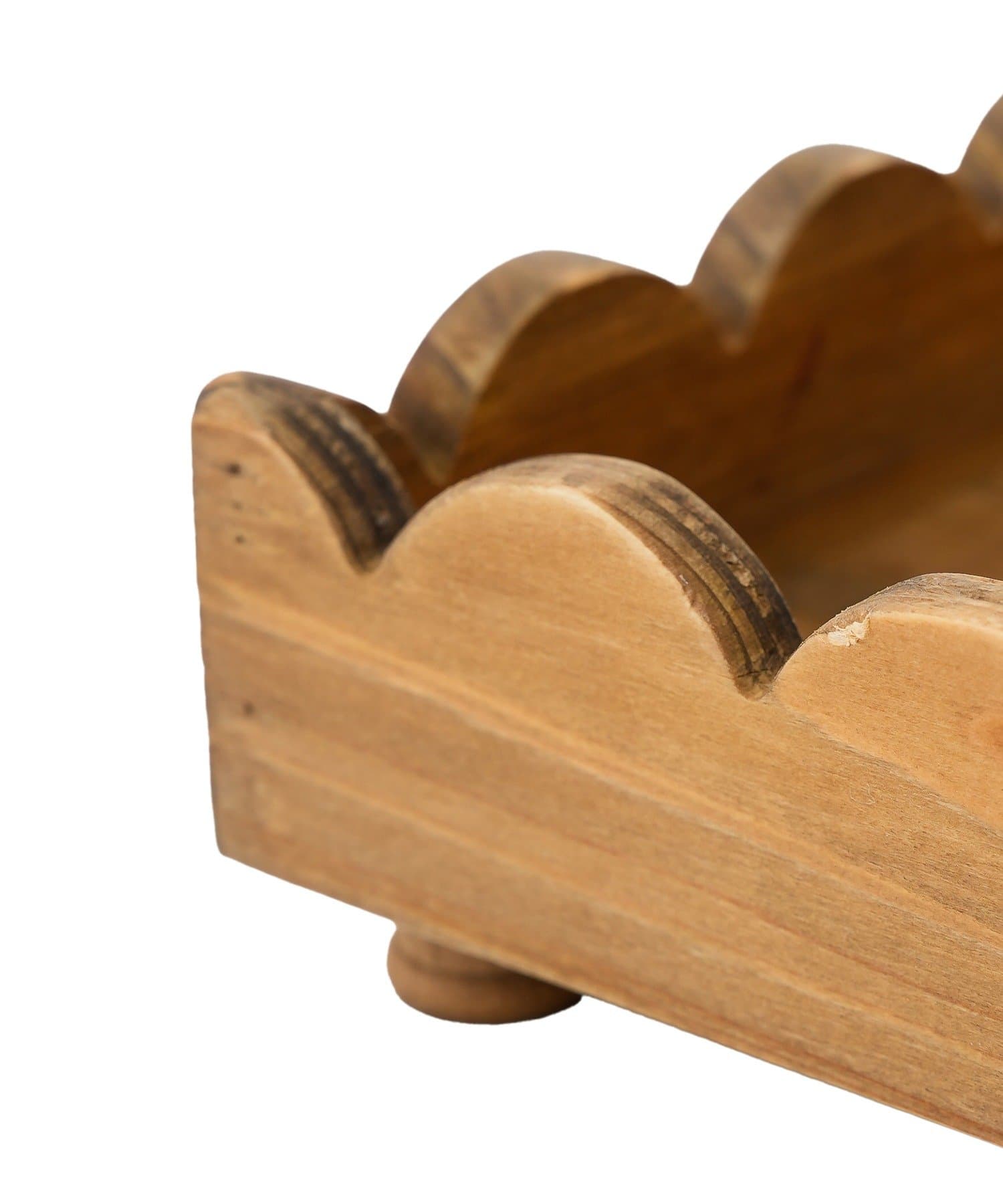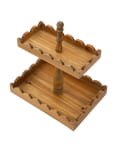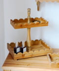 ●温かみのある天然木素材にスカラップの波型縁取りが可愛い、2段木製トレイ。