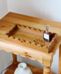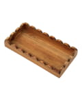 ●木の温かみとスカラップの波型縁取りが可愛い、レクタングル型のトレイ。