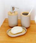 ●バンブーとプラ素材の組み合わせが高見えするソープディスペンサー。