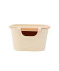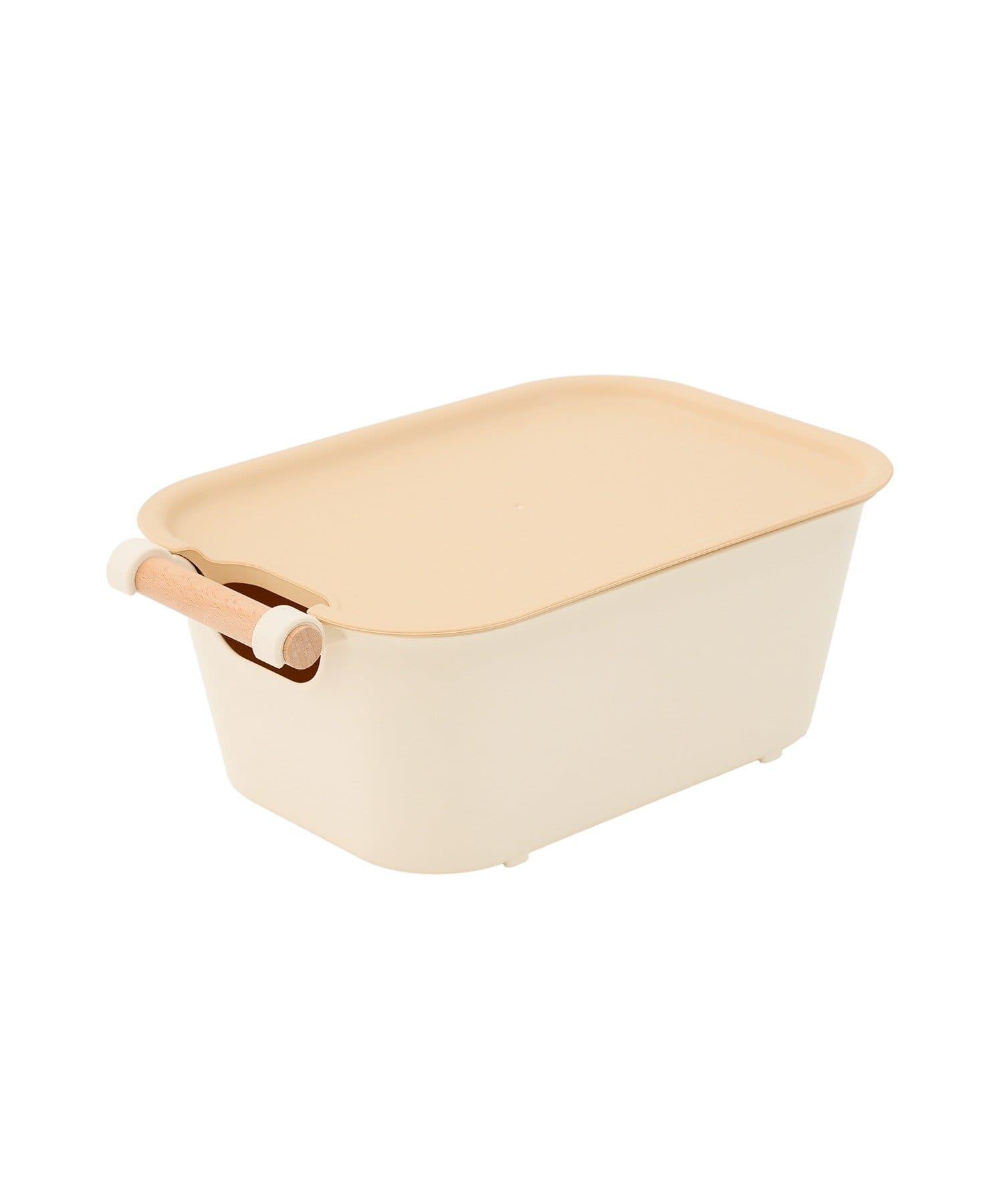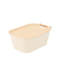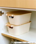 ●蓋付きで中身をしっかり隠せる、ハンドル付きの収納ボックス。