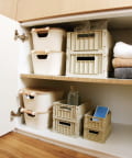 ●ブナのハンドルつきで持ち運びやすく、洗面下やクローゼットからサッと取り出せます。