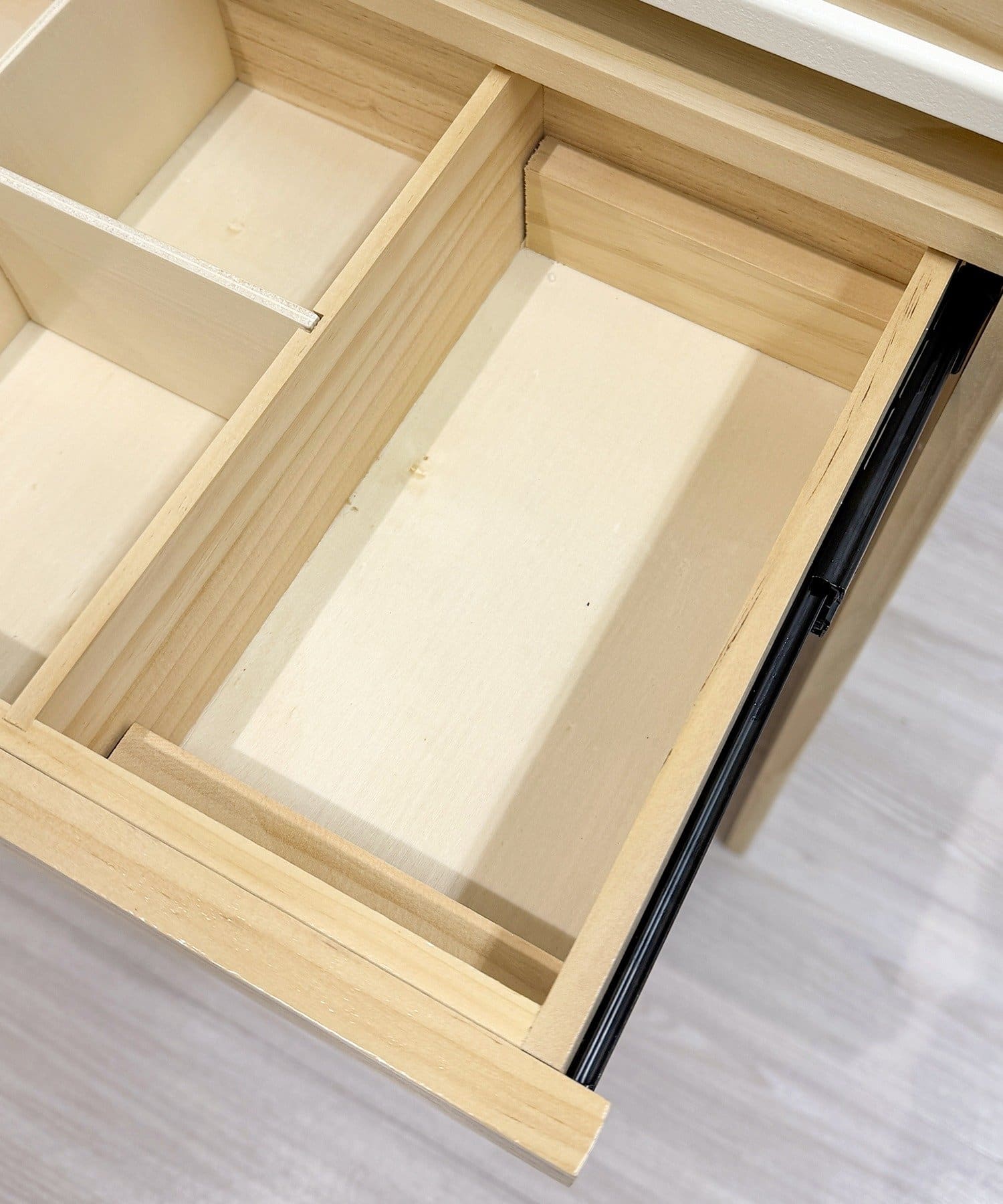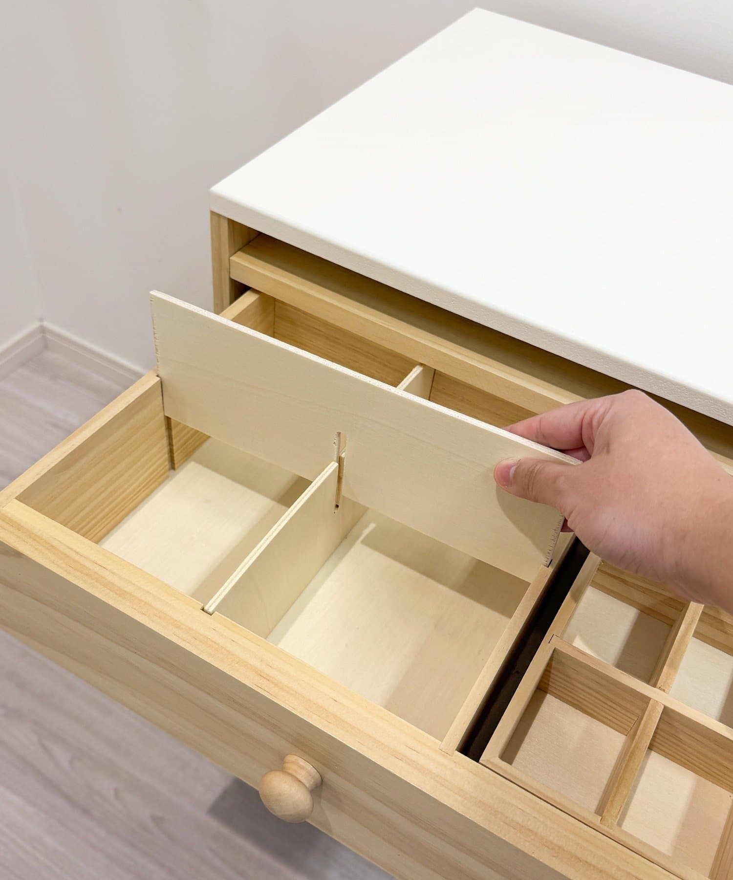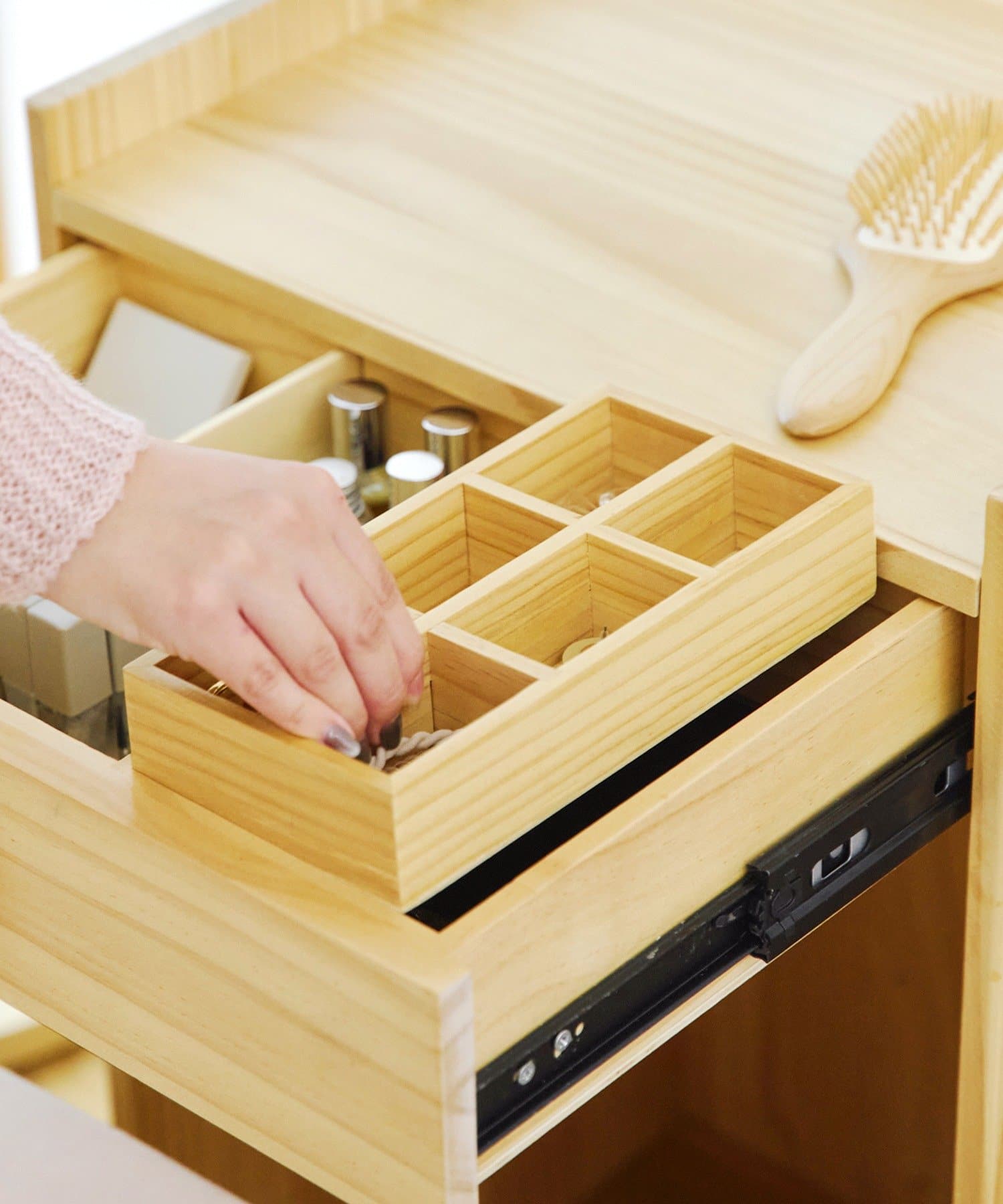 ●引き出し内は仕切り付き。アイテムごとに分けて収納しやすく取り出しもスムーズ。