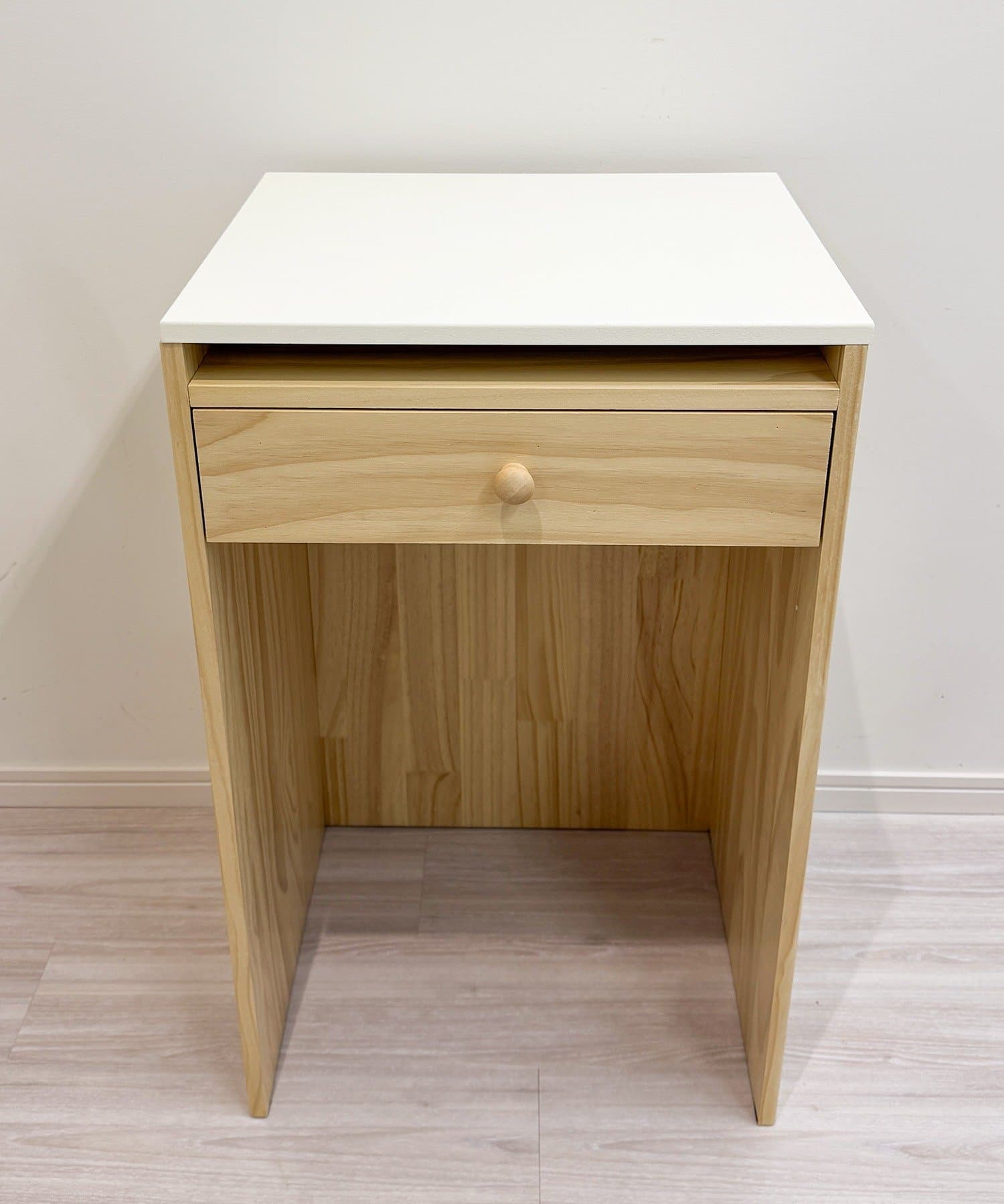 ●別売りの引き出し付き収納スツールがすっきりしまえるサイズ感です。