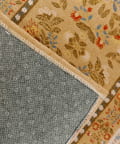 ●優しいベージュ基調に赤・青・茶の花柄が刺繍されたアンティーク調マット。