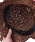 ●ブラウンのナチュラルな色味とあご紐が可愛く、顔周りをふんわり華やかに演出します。