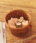 ●軽くて丈夫な水杉素材のハンドル付きラウンドバスケット。