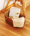 ●軽量で丈夫な水杉素材のハンドル付きバスケット。