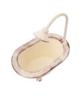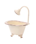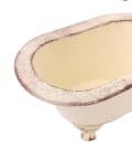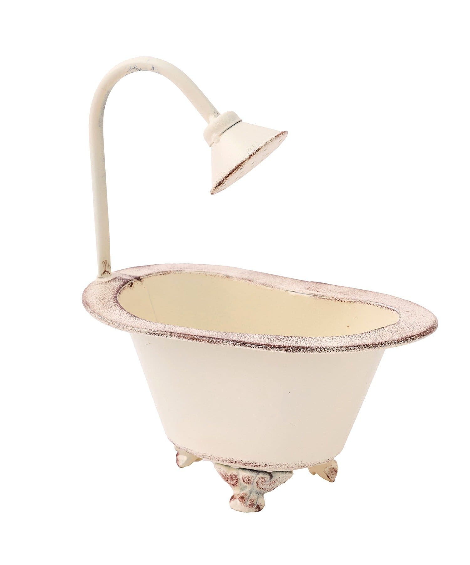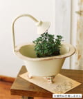 ●優しいアイボリーカラーにシャビーな塗装がアンティークなブリキ製バスタブ型ポットカバー。