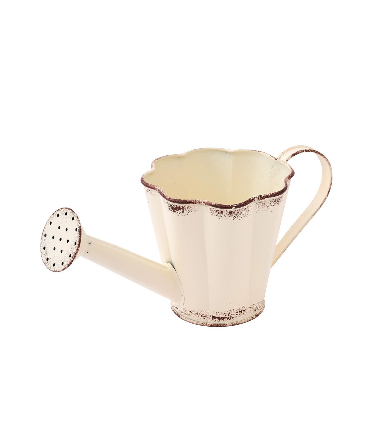 ●優しいアイボリーカラーにシャビーな塗装がアンティークなブリキ製ジョーロ型ポットカバー。