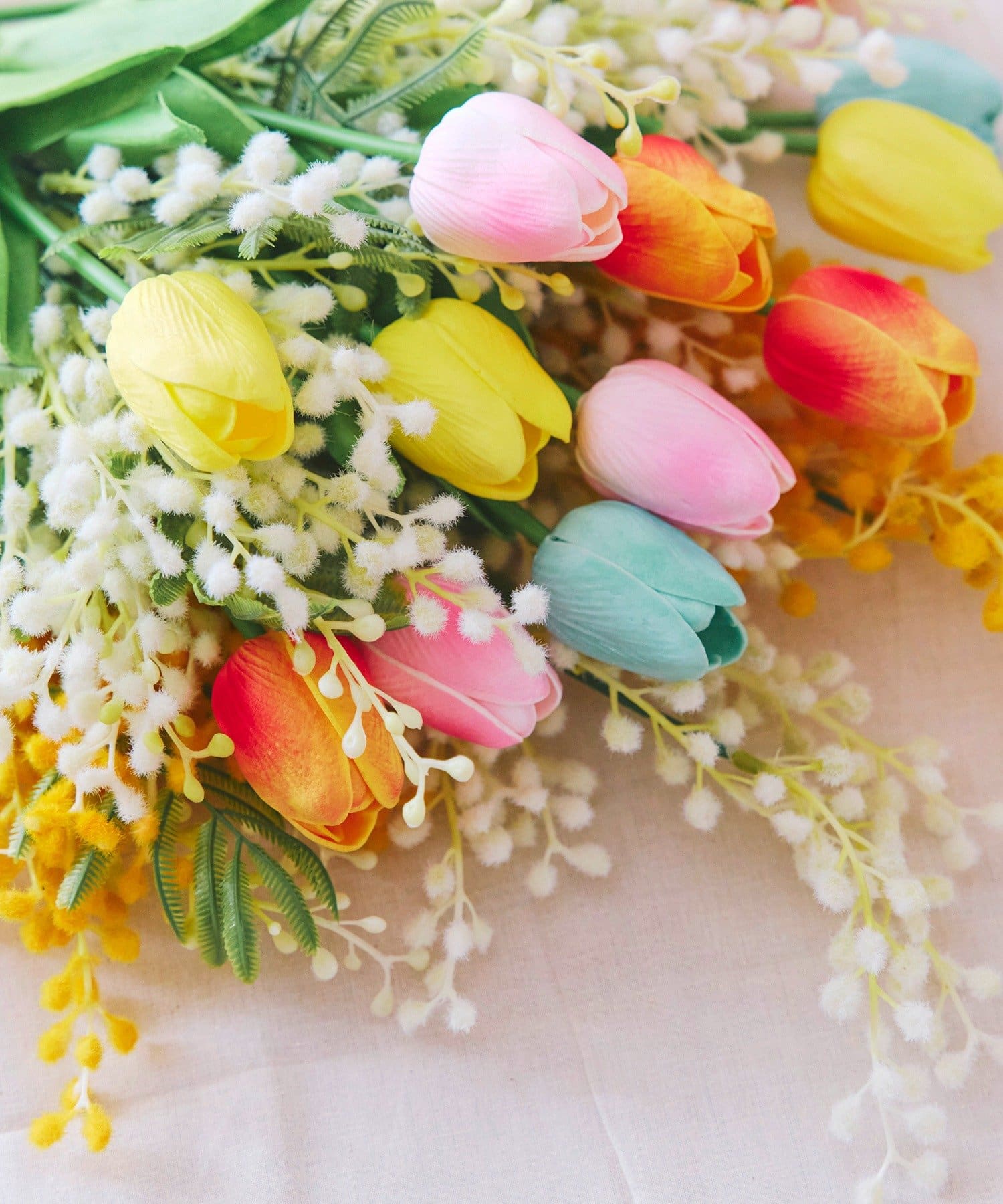 ●毎年大人気!葉っぱの質感などにこだわったフェイクフラワーのチューリップ。