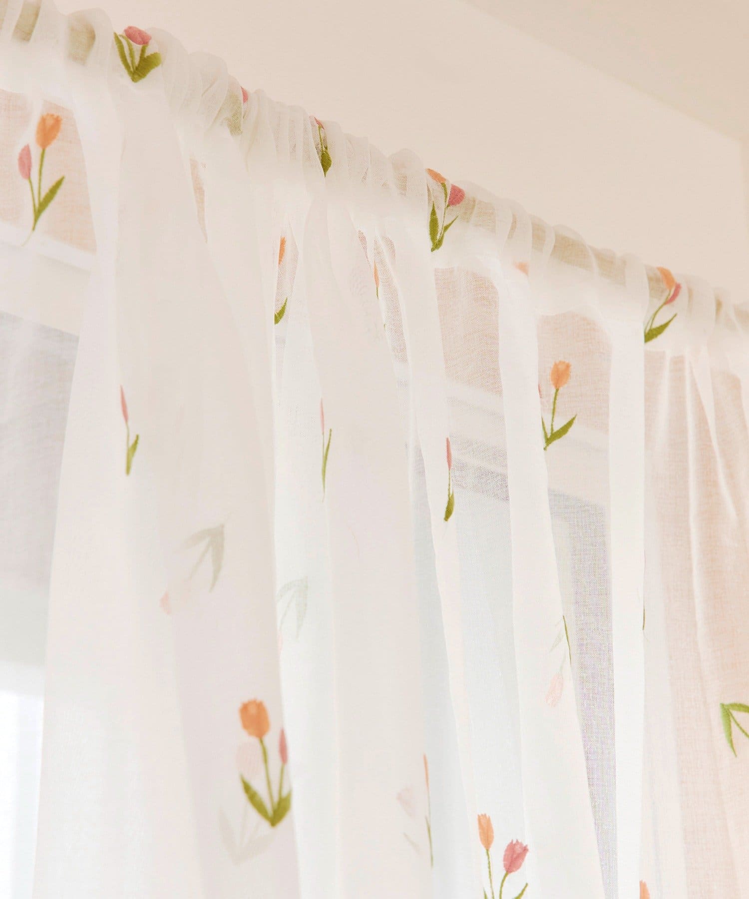●可愛らしいチューリップの刺繍がちりばめられたカーテン。