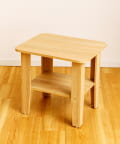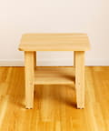 ●コンパクトな正方形デザインに下段の棚付きで、本やリモコン、マグカップなどをすっきり収納可能。