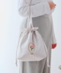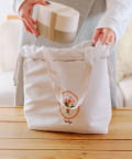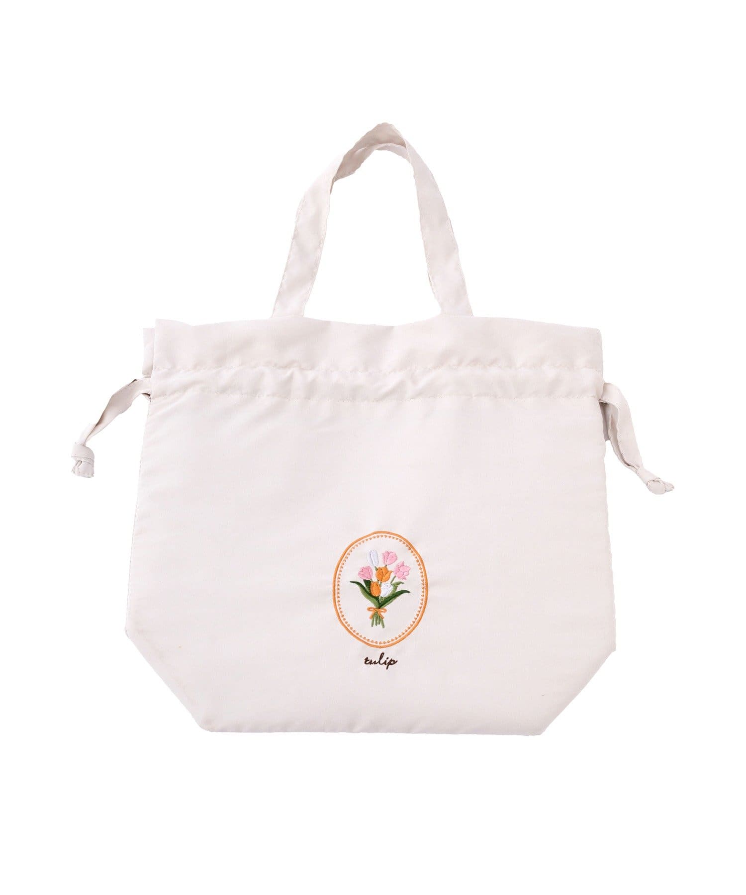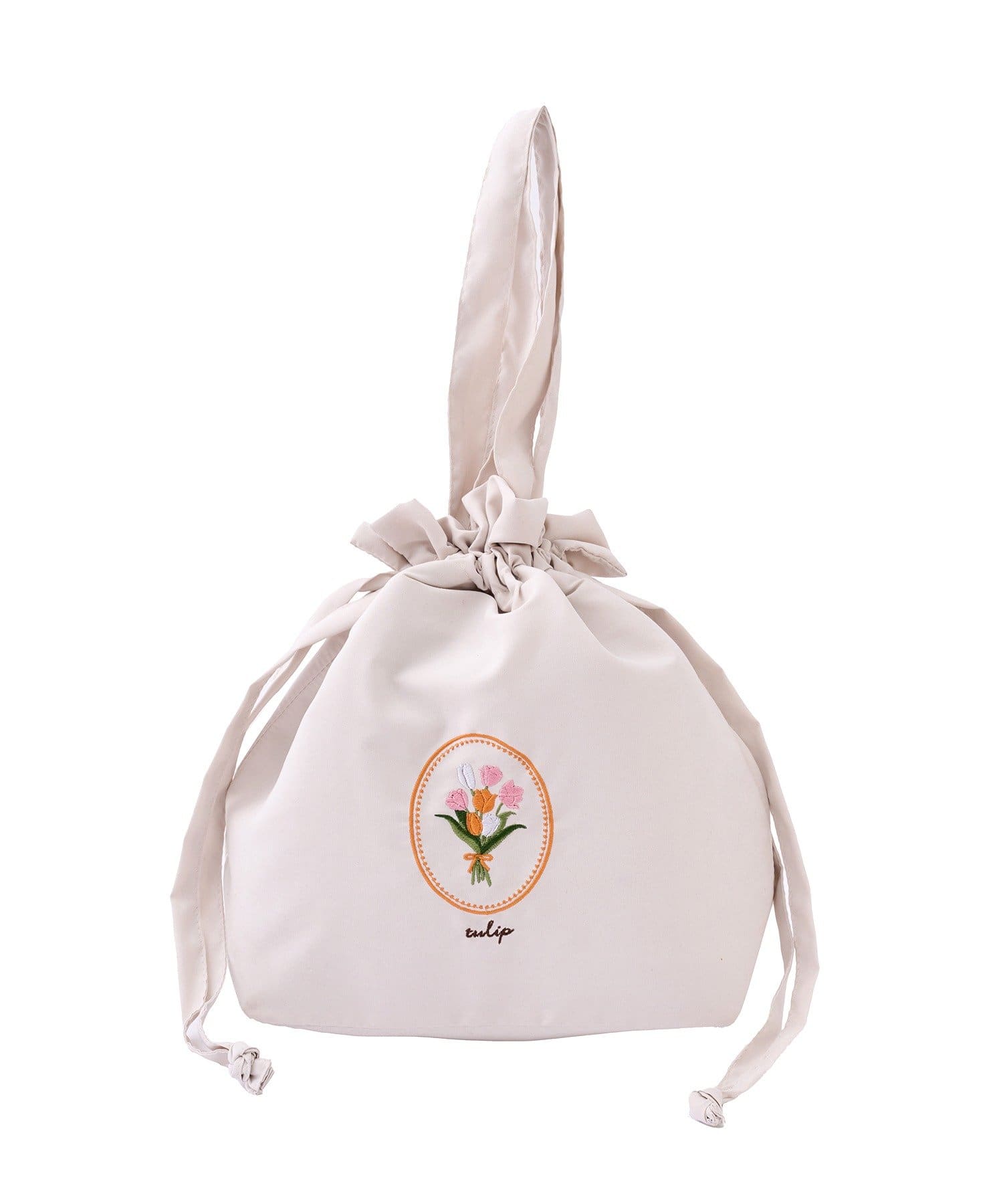 ●チューリップの花束が優しく刺繍された、保冷機能付きのオシャレな巾着バッグ。