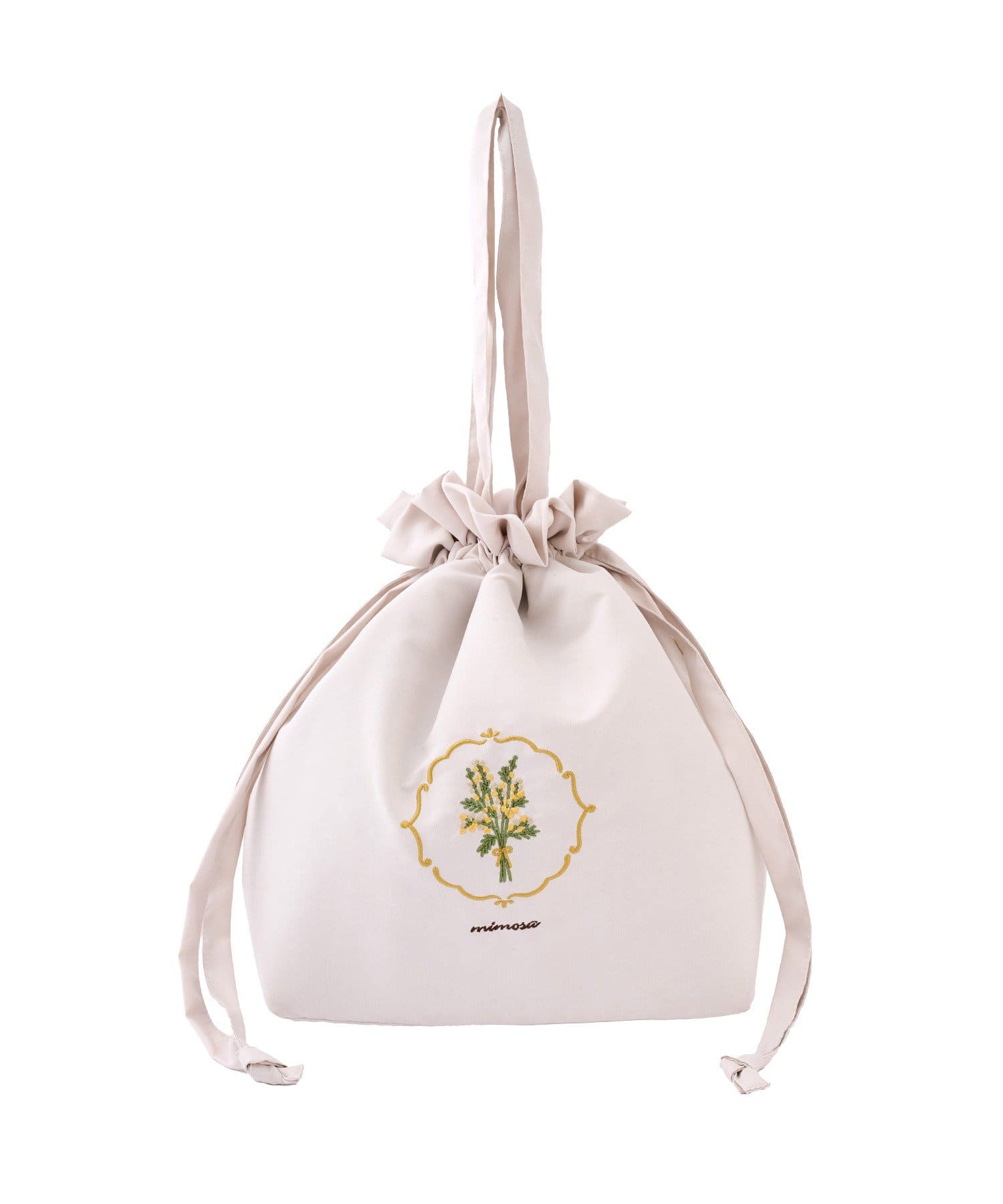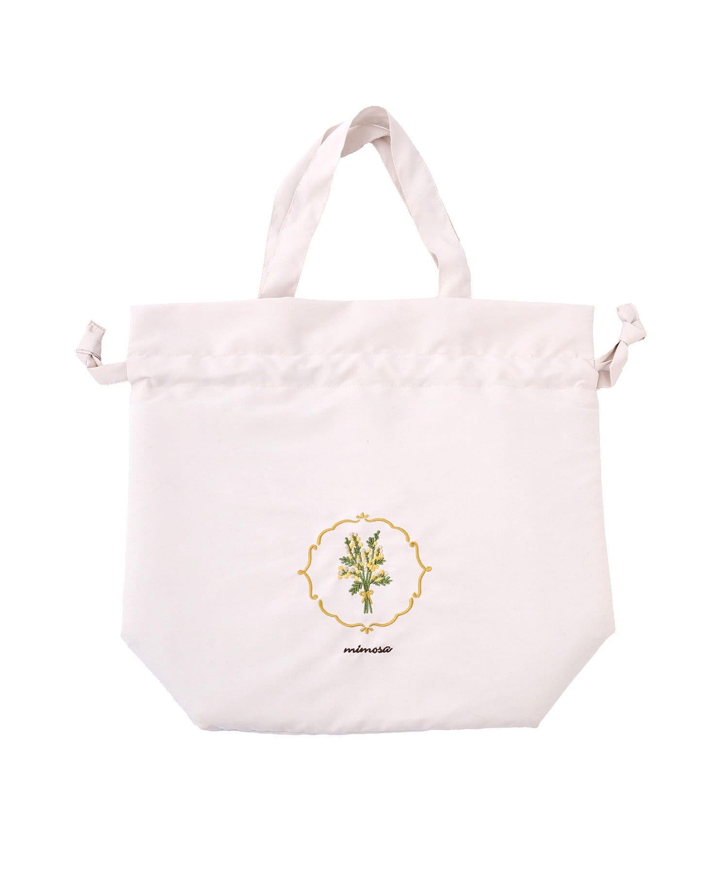 ミモザ刺繍保冷巾着バッグ