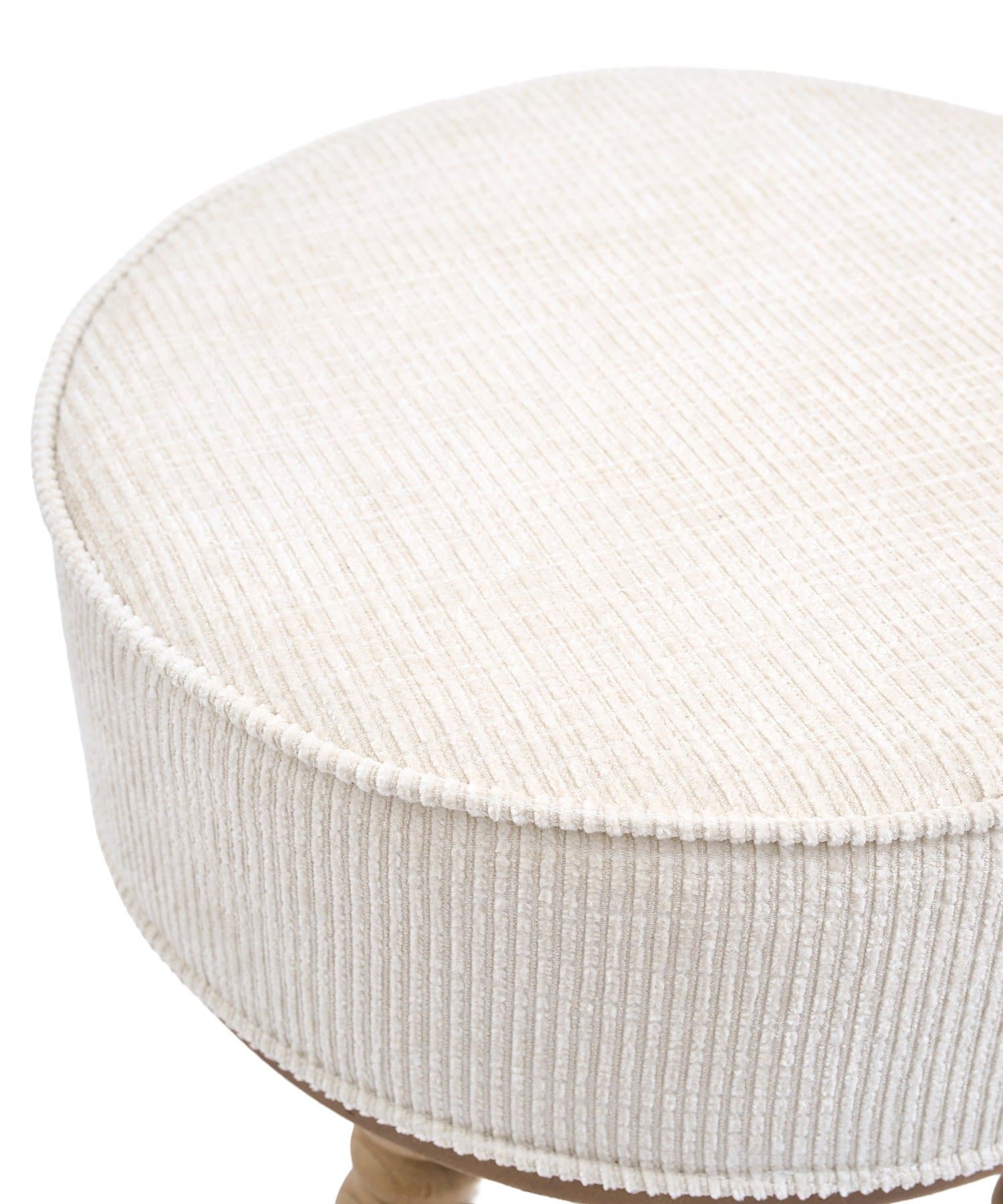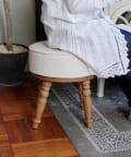 ●アンティーク調のファブリックが優しいラウンドスツール。
