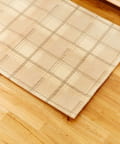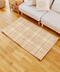 ●ジャガード織りならではの立体的なチェック模様が、お部屋にさりげないアクセントを添えるインテリアラグ。