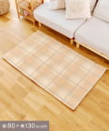 ●ジャガード織りならではの立体的なチェック模様が、お部屋にさりげないアクセントを添えるインテリアラグ。