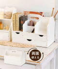●高さの異なる仕切りポケットには、ノートやハサミ、ペンなどの様々な文房具の収納にぴったりです。