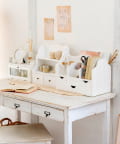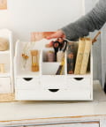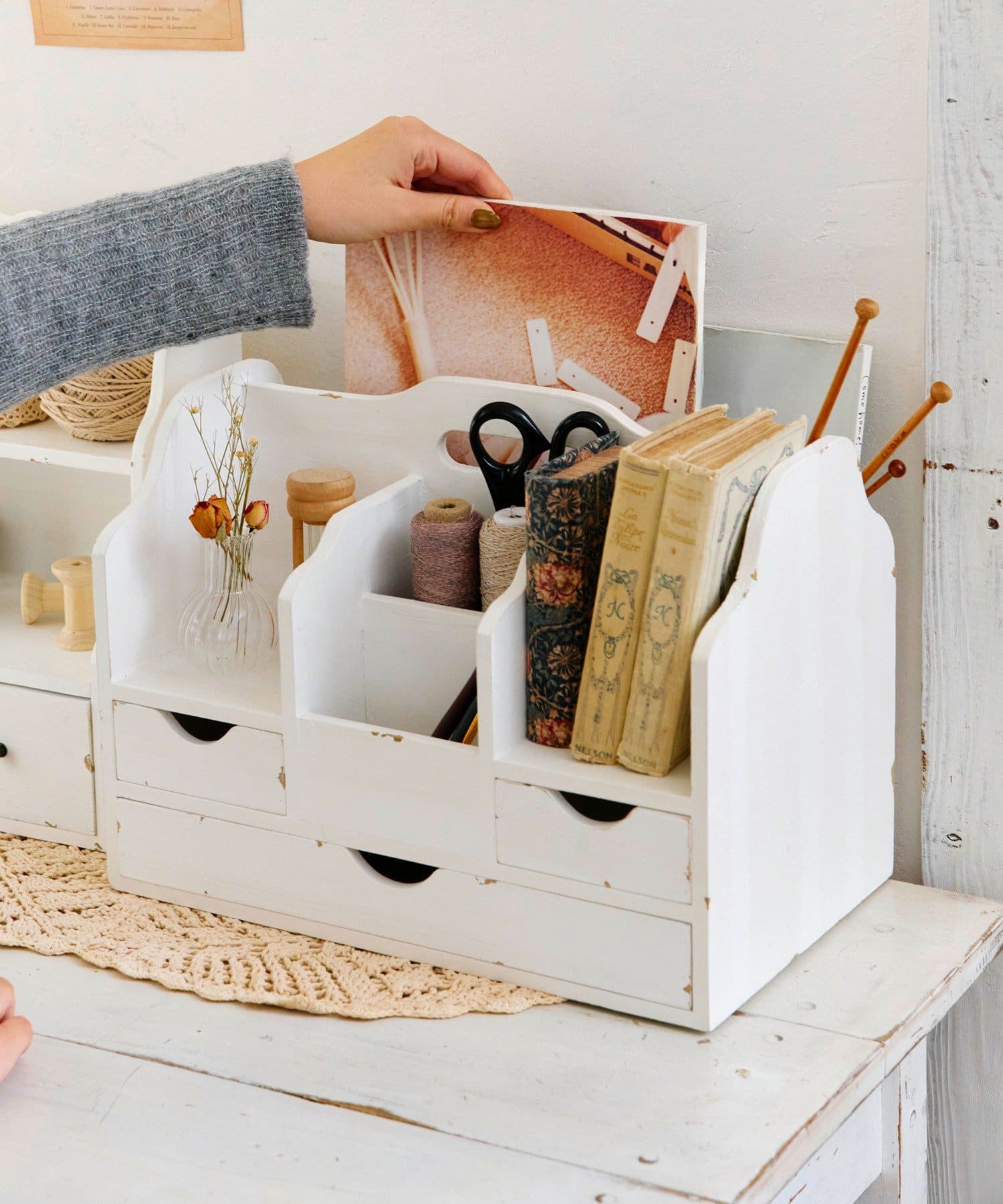 ●小さな3つの引き出しには、クリップや印鑑などの小物を分けて収納可能です。