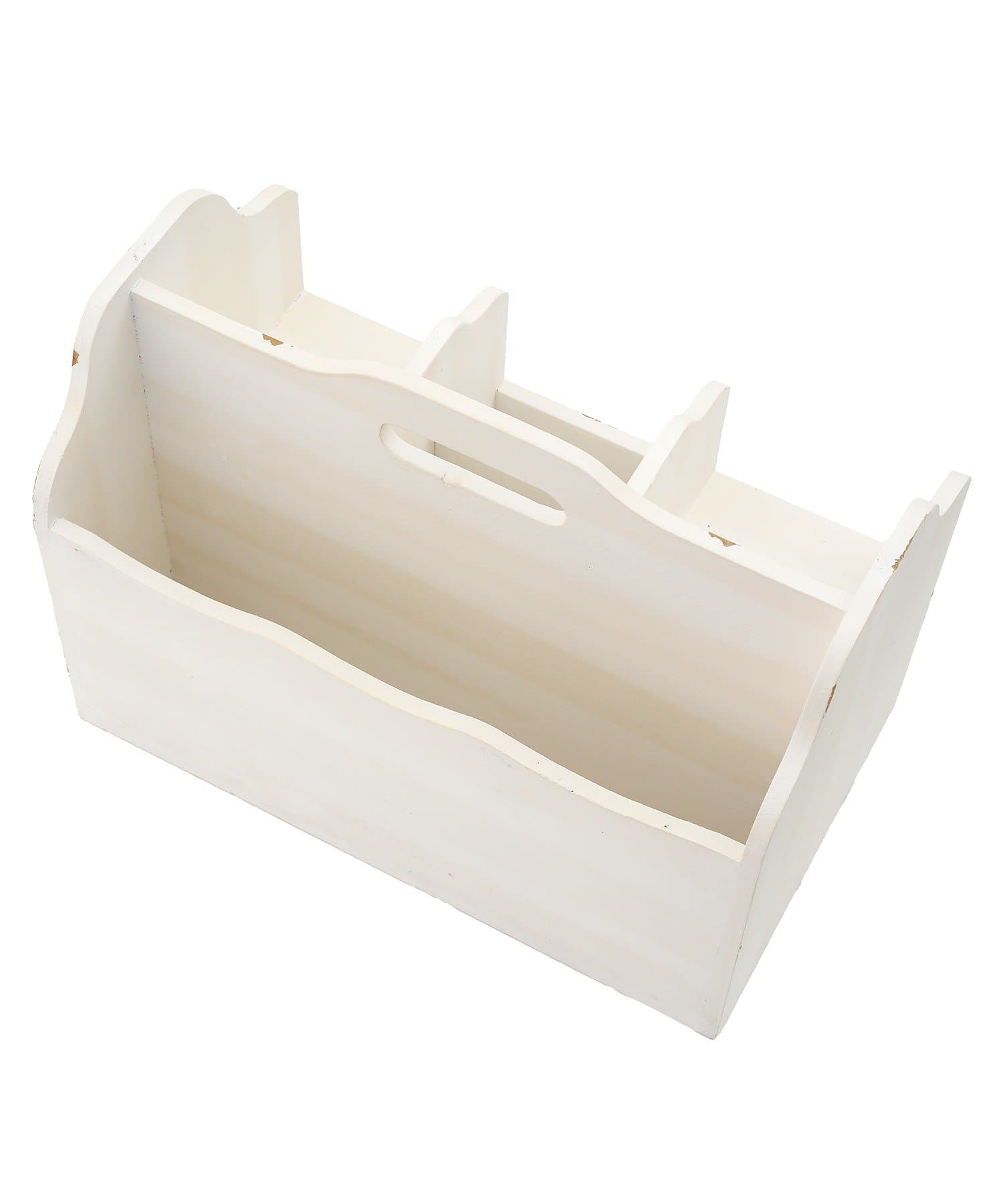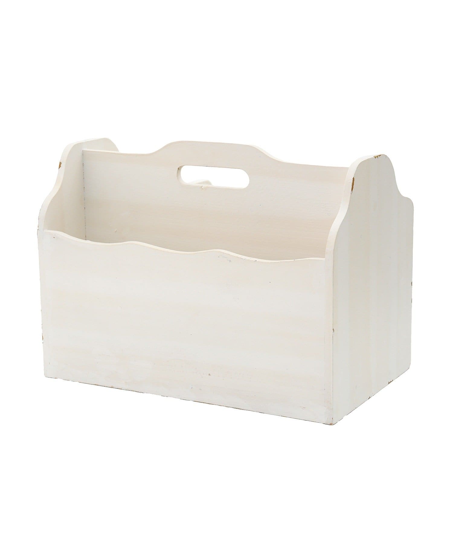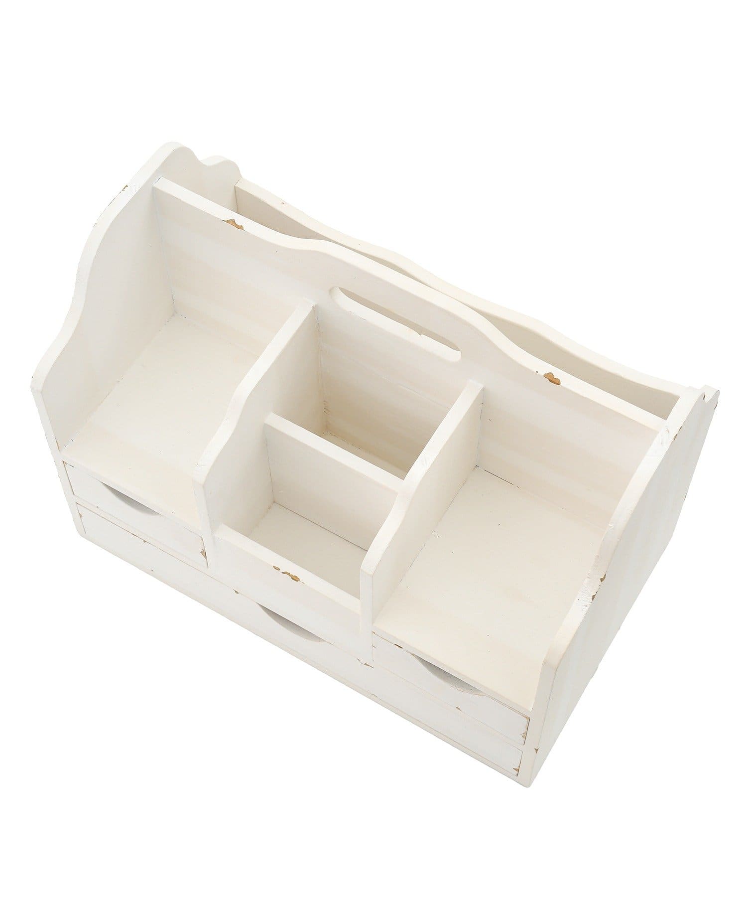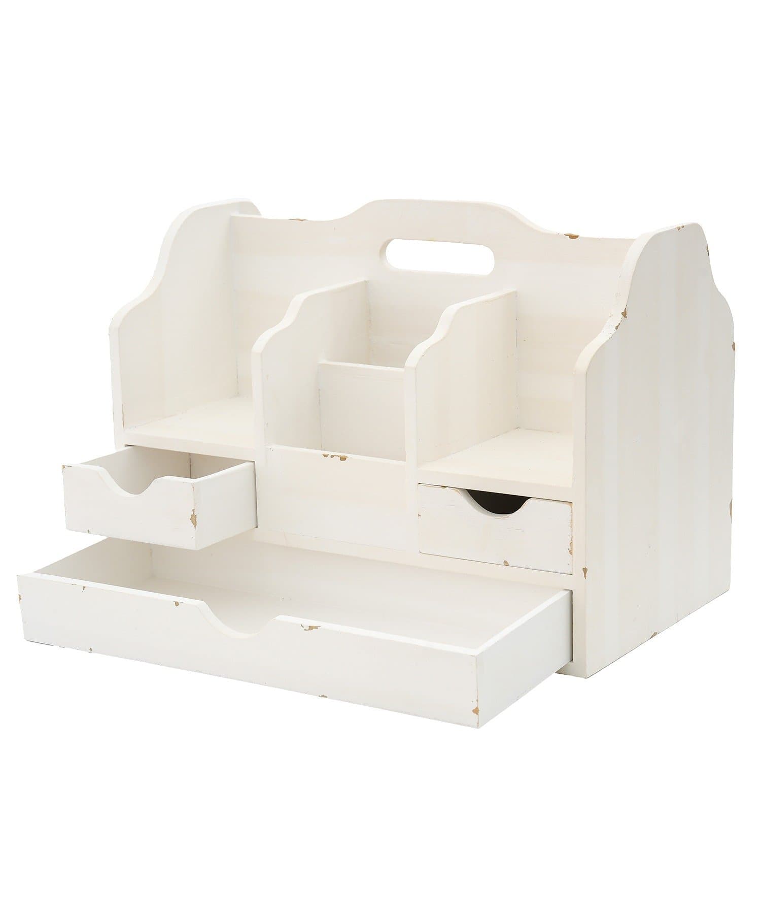 ●使い込まれたようなアンティーク加工がおしゃれな、木製の多機能収納ボックス。