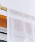 ●清潔感あふれる白地に、愛らしいマーガレットの刺繍が全面に施された、上品なデザインのカフェカーテン。
